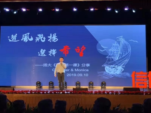 刘泽龙、杭佳婧、马丽雯三位校友为2019级新生上“开学第一课”2019年9月10日,学校举行了“青春献给祖国—领航·开学第一课”活动。刘泽龙、杭佳婧、马丽雯三位校友应邀为新生上“开学第一课”,与同学们分享自己的生活、学习、工作经历。