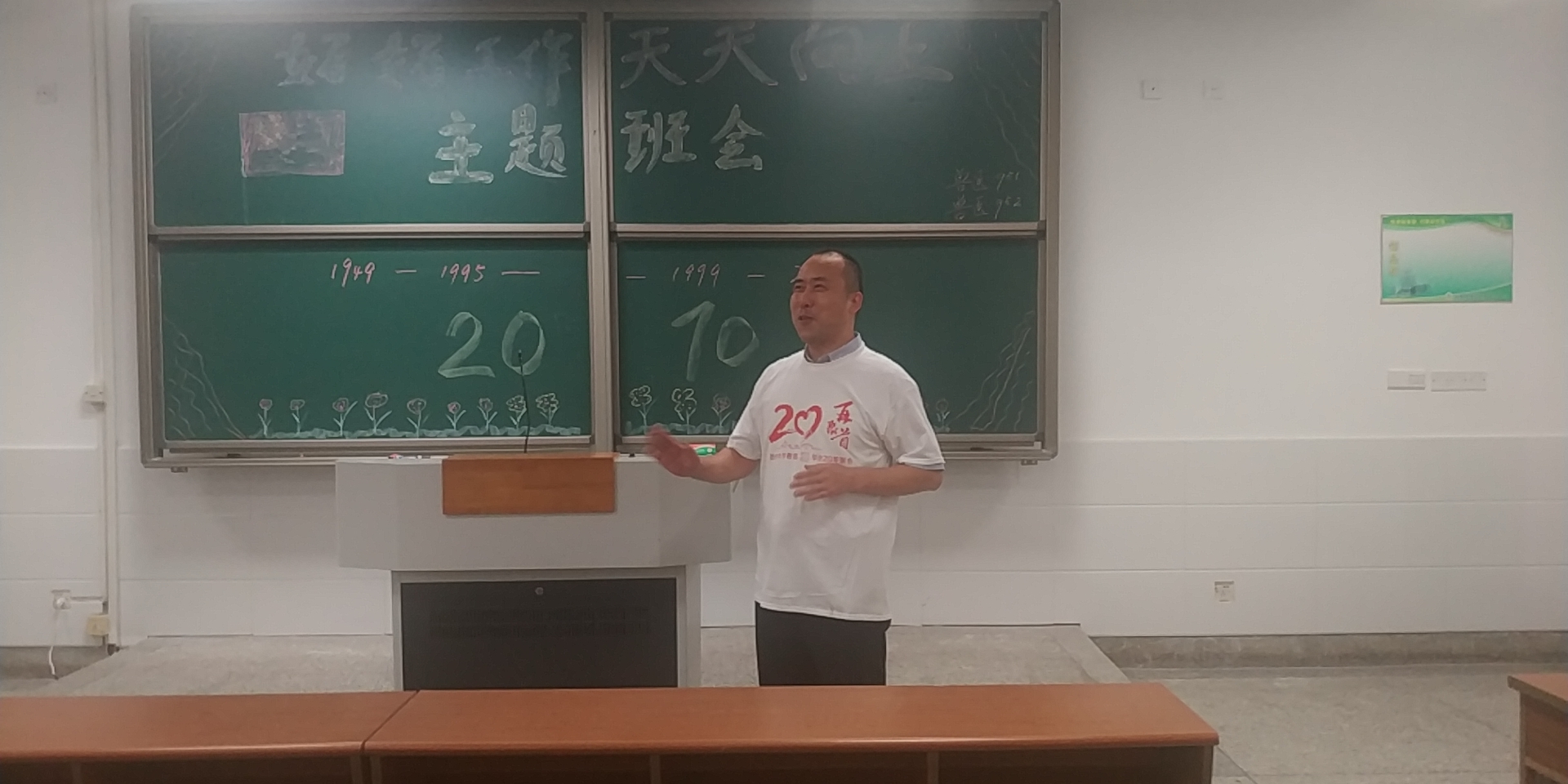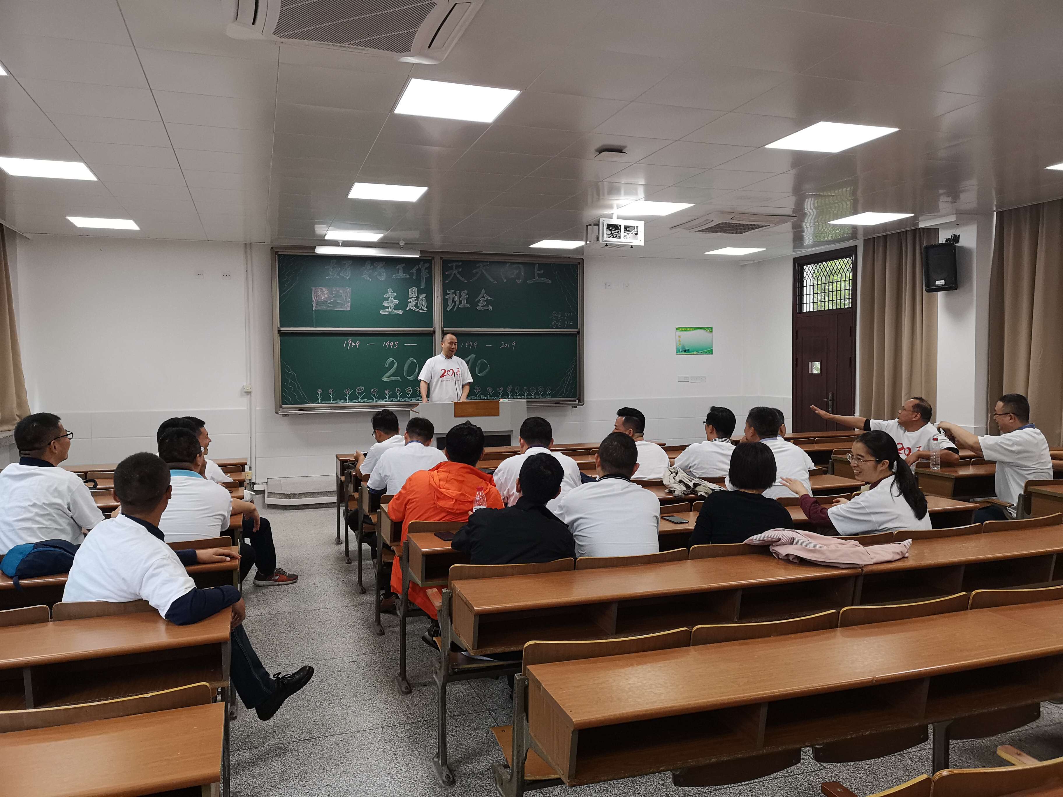 上午,校友们早早走进文汇路校区畅游校园追忆青春,并相约来到当年的教室举行“好好工作天天向上”庆祝新中国成立70周年暨毕业20周年主题班会。