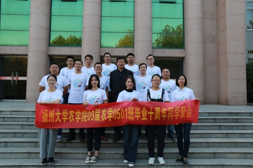 10月19-20日,扬州大学农学0501班校友毕业10周年返校聚会活动在农学院举行。时任班主任朱新开教授,夏玉荣、刘艳阳、周立云等老师应邀出席了活动。校友们一起重游了母校,品尝了文汇路校区食堂的美食,举行了师生座谈会。