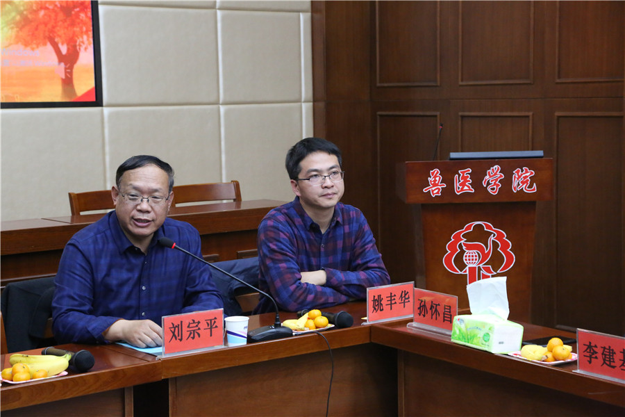 刘宗平向校友们介绍了兽医学院近年来在人才培养、学科建设、办学条件等方面的发展状况及取得的喜人成绩,并对同学们表达了殷切的希望和美好的祝愿。
