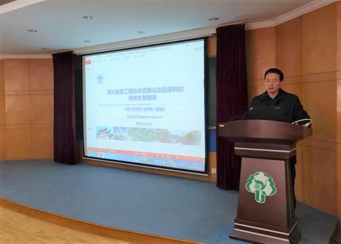 在报告中,堵国成校友从化妆品的制造与发展趋势、现代发酵工程技术、发酵工程技术制造化妆品原料三个方面展开介绍,并对未来以微生物发酵工程为核心的生物制造技术对化妆品产业的影响进行了展望。报告结束后,师生踊跃提问,积极互动交流。