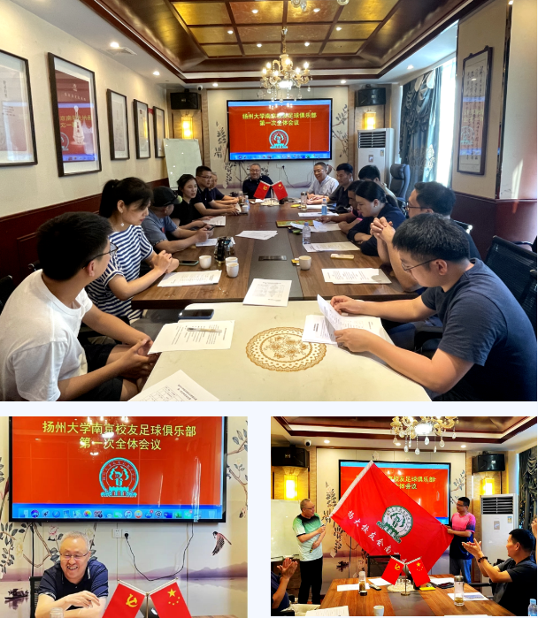 为迎接2022第五届中国高校校友会(南京赛区)足球联赛的举办,丰富扬大南京校友的业余生活,加强兄弟校友会的交流,提升扬州大学和南京校友会的知名度,在扬州大学校友总会的大力支持下,扬大南京校友分会筹建的扬州大学南京校友足球俱乐部于2022年8月6日正式成立,并召开了第一次全体会议。