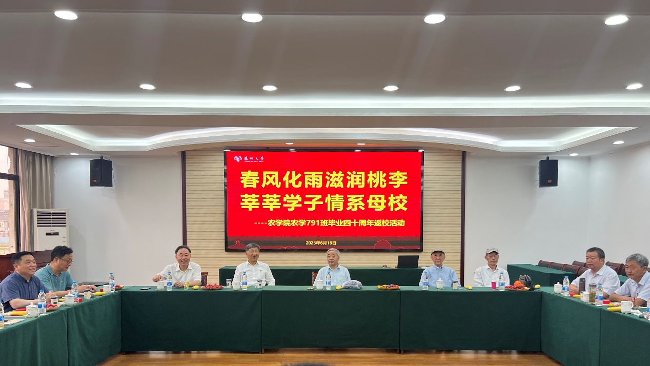 农学院负责同志介绍了学院发展情况,与会教师和校友们展开热烈交流,追忆似水流年,回顾在校美好时光,分享生活感言,送上祝福和嘱托。