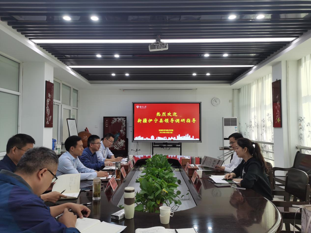 10月25日,生物科学与技术学院2009届校友、新疆伊犁州伊宁县委常委、南通援疆工作组副组长杨永辉一行回到生物科学与技术学院调研交流,全体院领导出席交流会。院长黄金林主持会议。