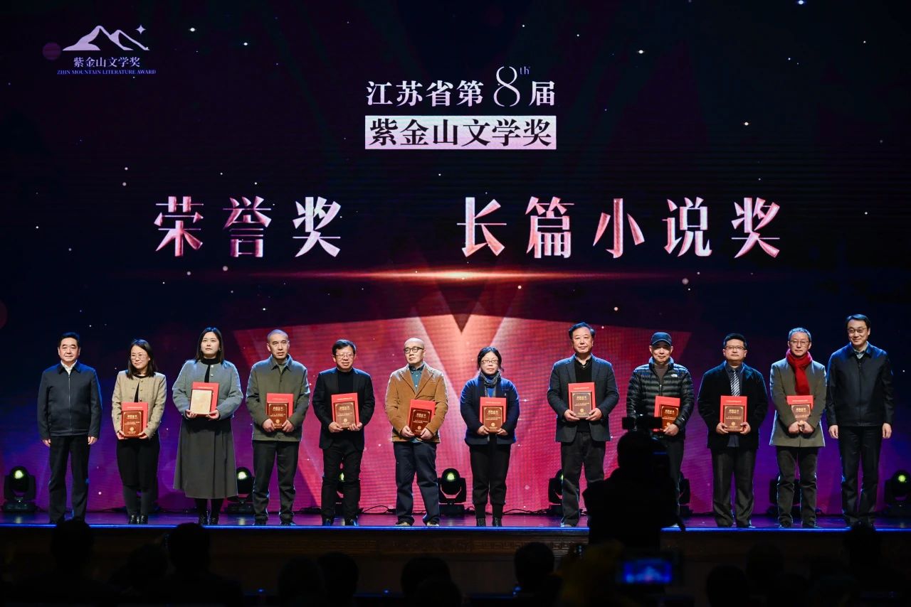 12月20日晚,由省作协主办的江苏省第八届紫金山文学奖在南京颁奖。江苏省委常委、省委宣传部部长张爱军,省政府副省长赵岩,省委副秘书长仲红岩,省政府副秘书长徐华勤,省委宣传部副部长徐宁,我校校友、中国作协副主席、省作协主席毕飞宇,省作协党组书记、书记处第一书记、常务副主席郑焱,省财政厅副厅长倪国强,省人力资源和社会保障厅一级巡视员陈健,省作协党组成员、书记处书记、副主席丁捷、贾梦玮,党组成员、书记处书记杨发孟出席活动并为获奖者颁奖。省文联党组书记、副主席、书记处第一书记常胜梅,省社科联党组成员、副主席刘西忠,新华日报社党委委员、副社长钱进,我校校友、江苏省广播电视总台党委书记、台长、集团董事长葛莱,凤凰出版传媒集团党委书记、董事长章朝阳,省文投集团党委书记、董事长王洪俊,省全民阅读促进会会长、省作协原党组书记韩松林,省政协常委、教卫体委员会副主任,省作协原党组书记汪兴国,以及省作协主席团成员,省有关部门、单位职能处室负责同志,全省各设区市文联主席、作协主席,行业作协负责同志,省作协机关全体人员,省作协会员代表、青年作家读书班学员、所有获奖作家等四百余人参加了颁奖典礼。