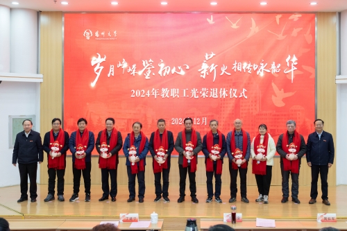 12月11日,学校在荷花池校区举行2024年教职工光荣退休仪式。校党委书记焦新安出席仪式并讲话,校长丁建宁致荣退贺词。焦新安、丁建宁共同为荣退教职工代表颁发纪念品并合影留念。校党委副书记周如军主持仪式。