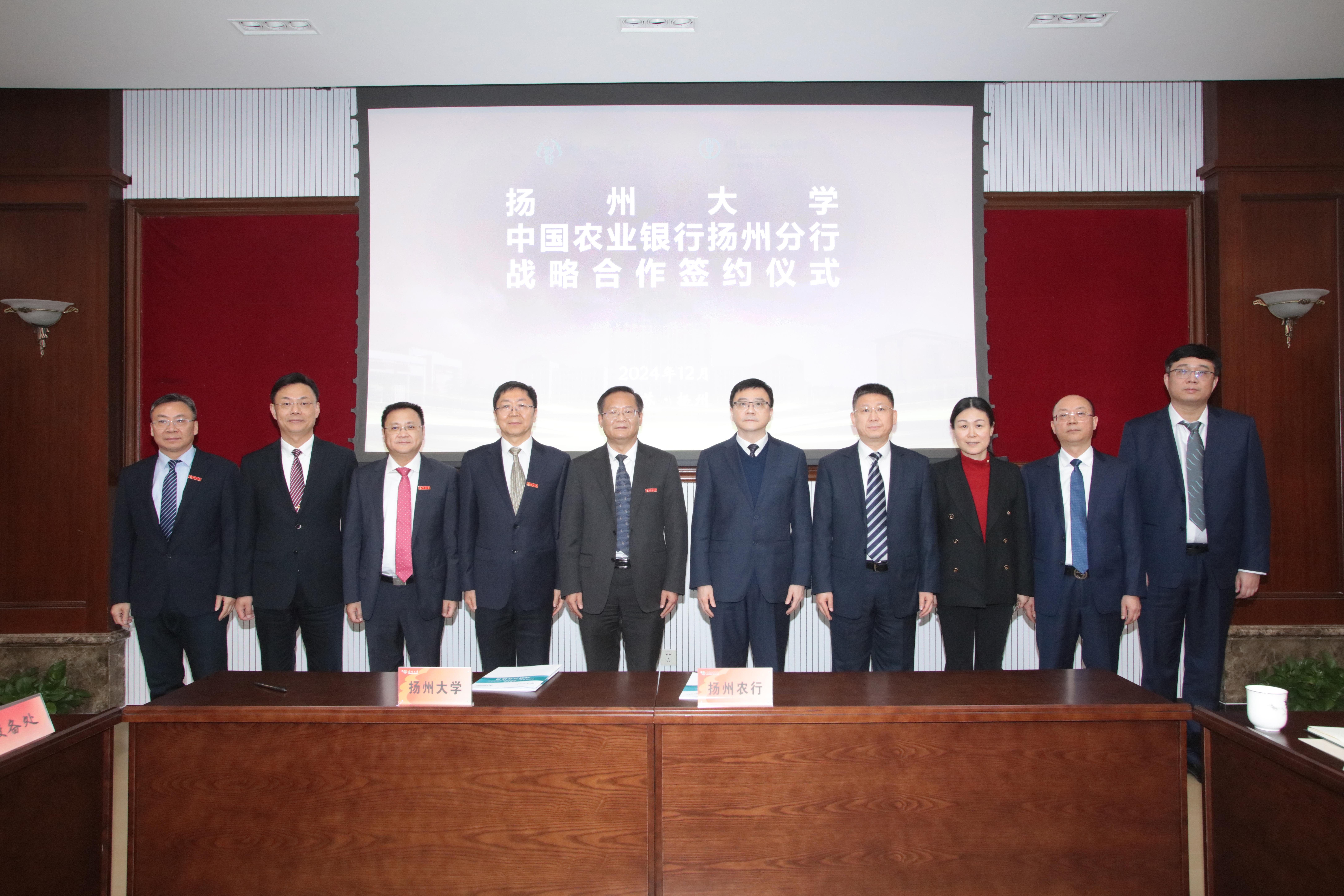 12月25日,学校与中国农业银行扬州分行战略合作签约仪式在荷花池校区行政楼举行。校党委书记丁建宁、中国农业银行江苏省分行副行长刘淮金出席仪式并致辞。副校长蒋乃华代表学校与中国农业银行扬州分行签署协议。