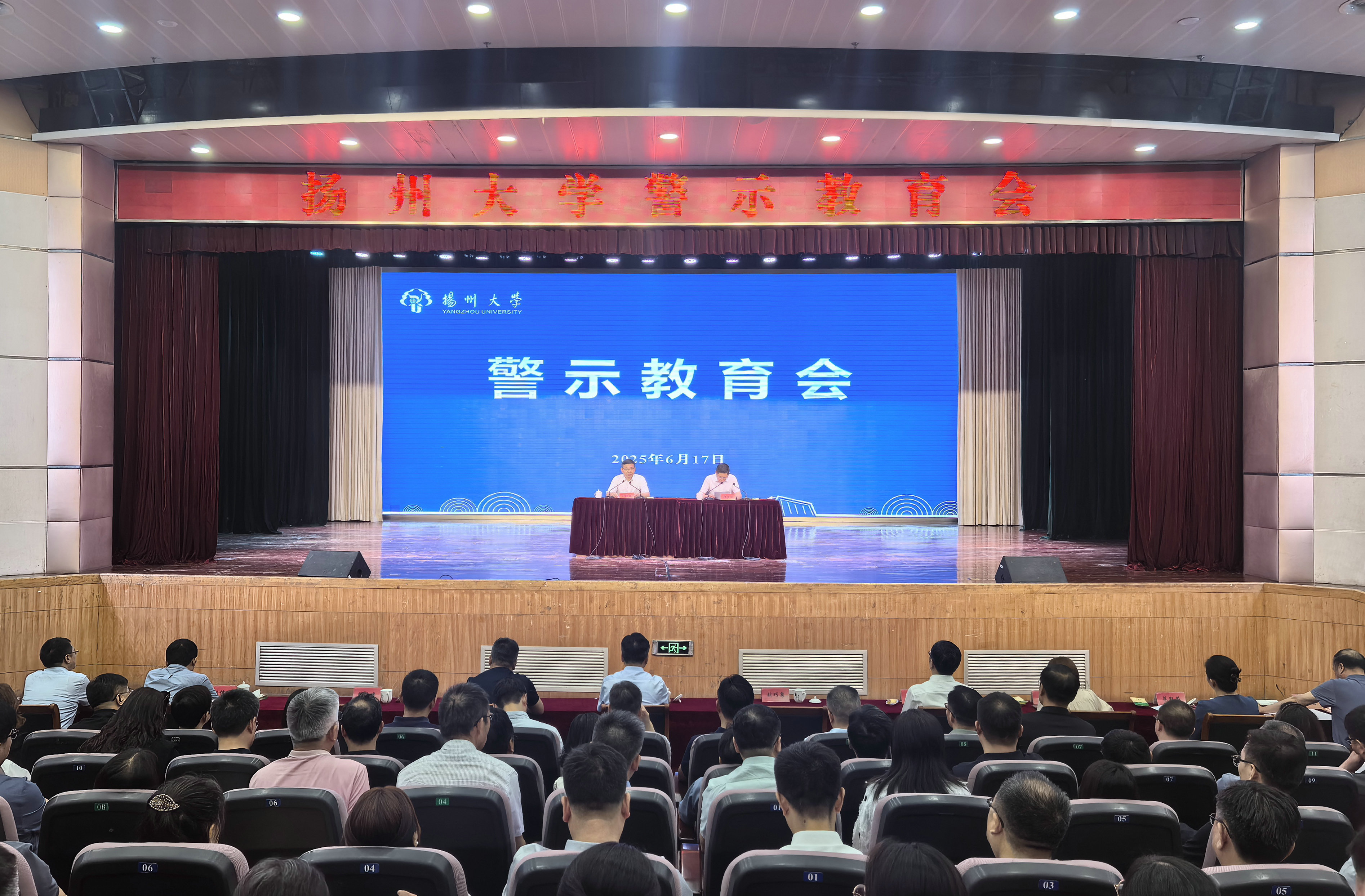6月17日下午,学校召开深入贯彻中央八项规定精神学习教育警示教育会,深入学习贯彻习近平总书记关于加强党的作风建设的重要论述,以案说德、以案说纪、以案说法、以案说责,持续巩固拓展作风建设成效,为学校事业高质量发展提供坚强保障。校长刘巧泉出席会议并讲话,校纪委书记、派驻监察专员邱庆峰主持会议。全体在扬校领导、党委常委出席会议。