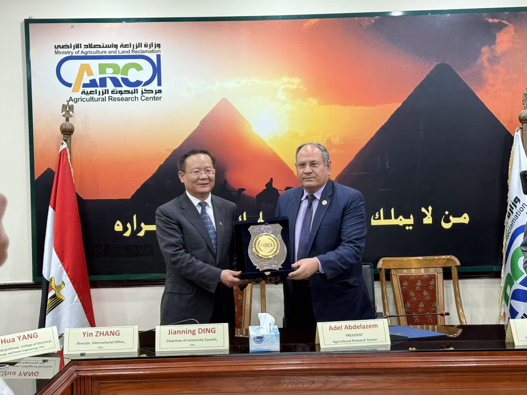 在埃及农业研究中心,双方分别介绍了各自单位的基本情况,交流了已获批的合作项目,召开了“一带一路”联合实验室会议,表达了进一步加强合作科研的共同愿景,希望通过师生互派、科研合作带动更多领域的深度交流。访问期间,代表团宣传了我国外专人才政策和我校外籍博士后聘用政策,并看望了在埃及农业研究中心开展学术交流的我校师生。会谈后,学校与埃及农业研究中心,农学院与埃及农业研究中心大田作物研究所分别签署了意向合作协议书。