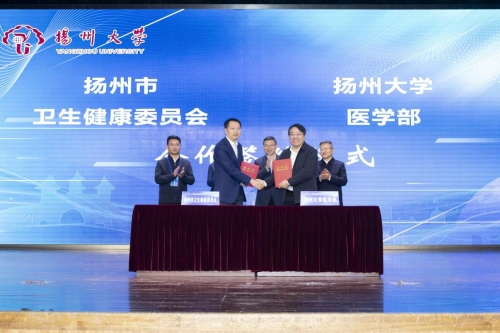 开幕式上,扬州市卫生健康委员会与扬州大学医学部签署战略合作协议,扬子江药业集团与扬州大学医学部签署产学研合作协议,扬州大学附属医院京沪高级医学中心正式启用。