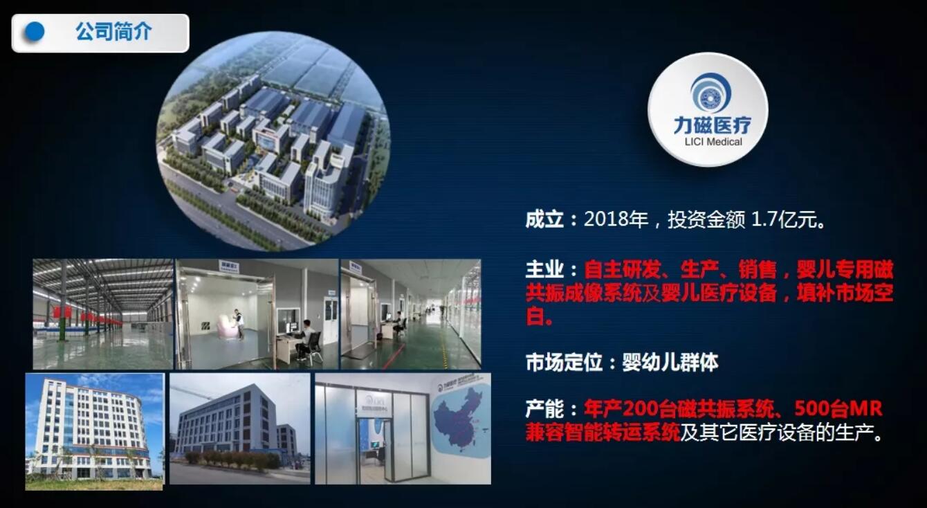 江苏力磁医疗设备有限公司是一家专业从事高端医疗器械设计、研发、制造、销售和维护的高科技企业,2018年率先入驻江苏力磁医疗科技产业园。公司拥有一支由中外技术管理专家组成的优秀团队,历时三年,成功研发“婴幼儿脑部疾病检查专用磁共振成像系统”,解决婴幼儿脑部疾病检查痛点问题,这是一款最高级别的有源三类医疗器械。