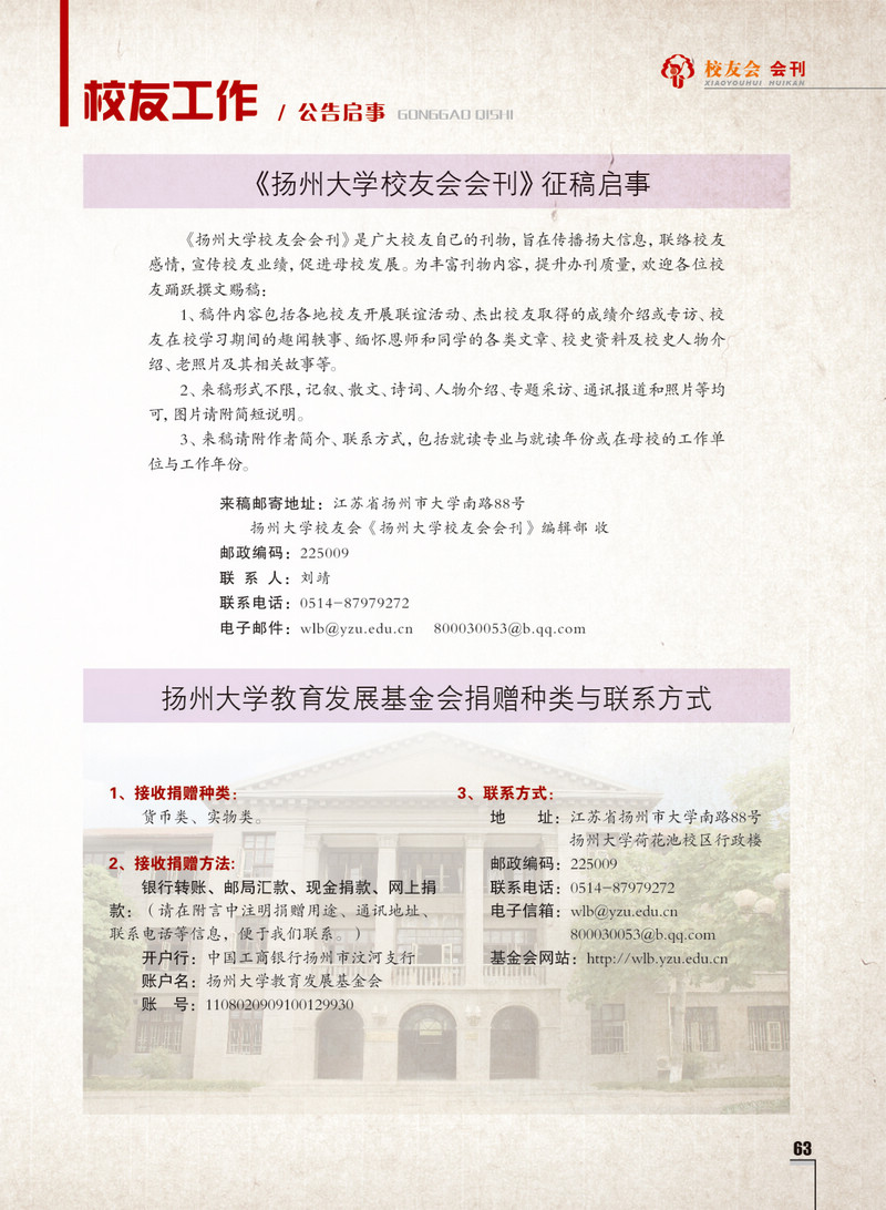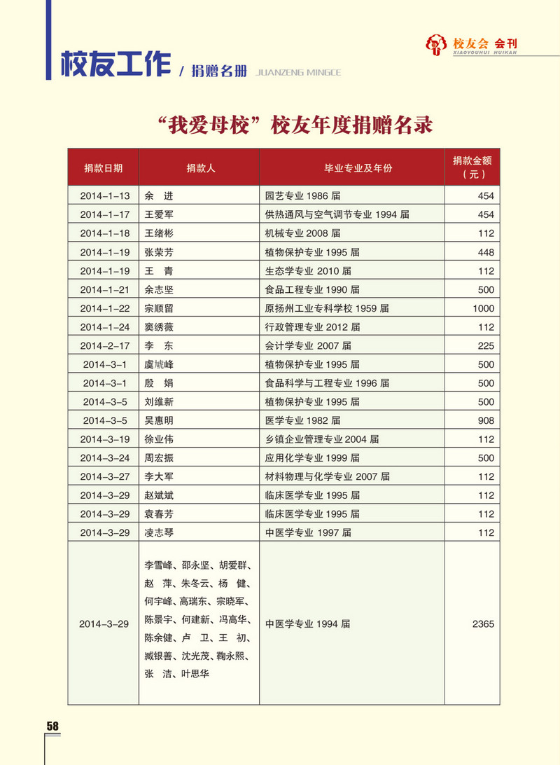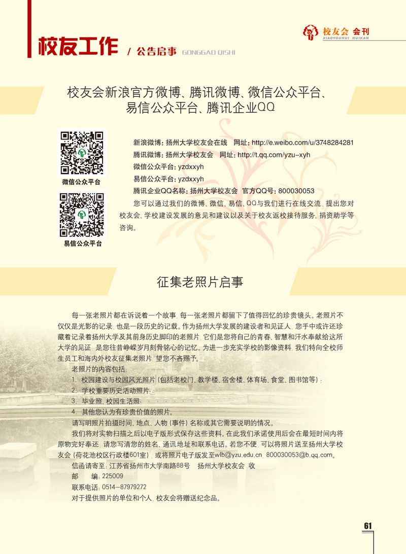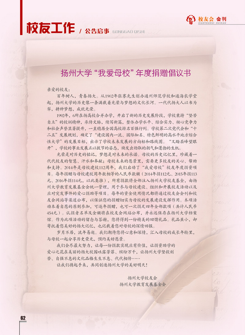 《扬州大学校友会会刊》2014年春华卷 总第16期