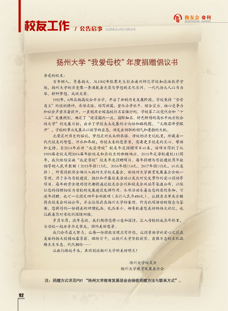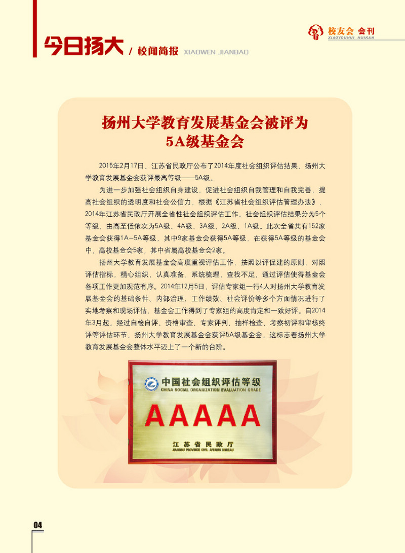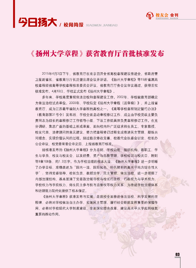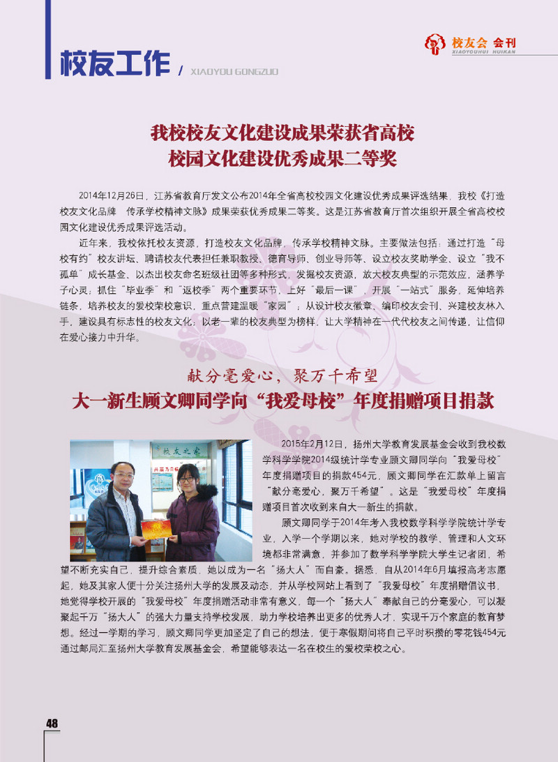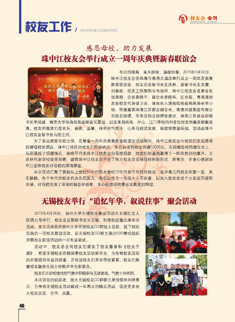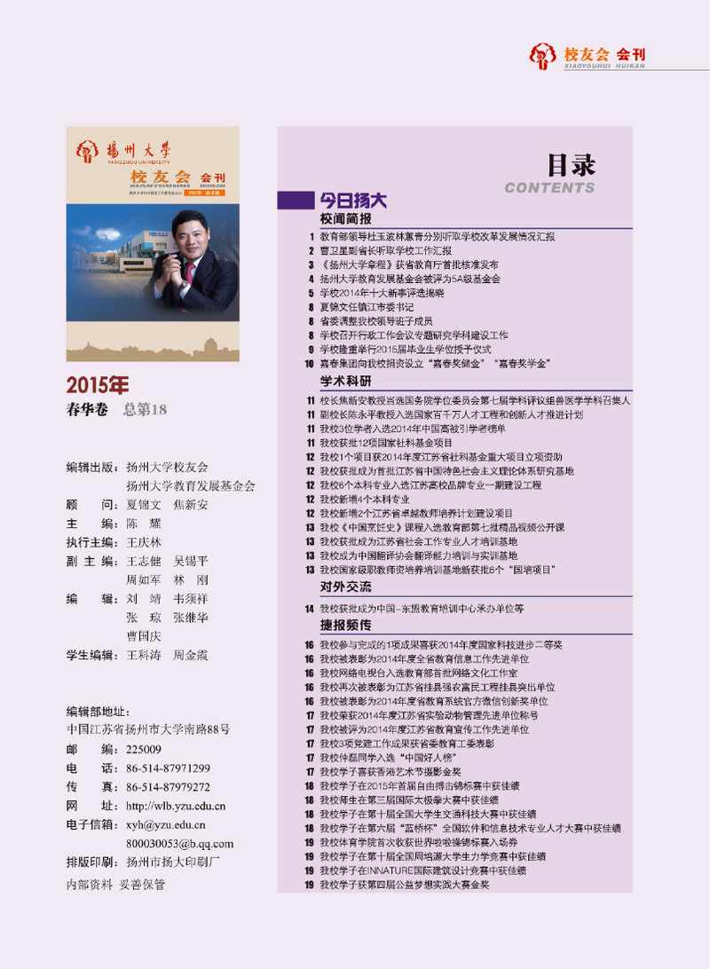 《扬州大学校友会会刊》2015年春华卷 总第18期