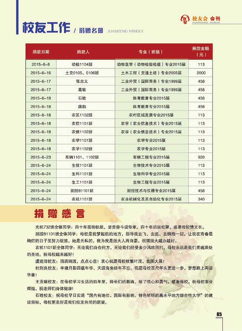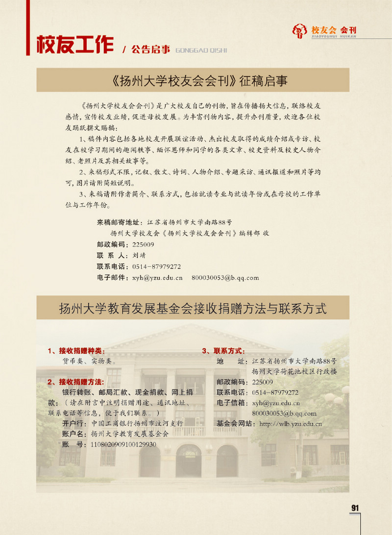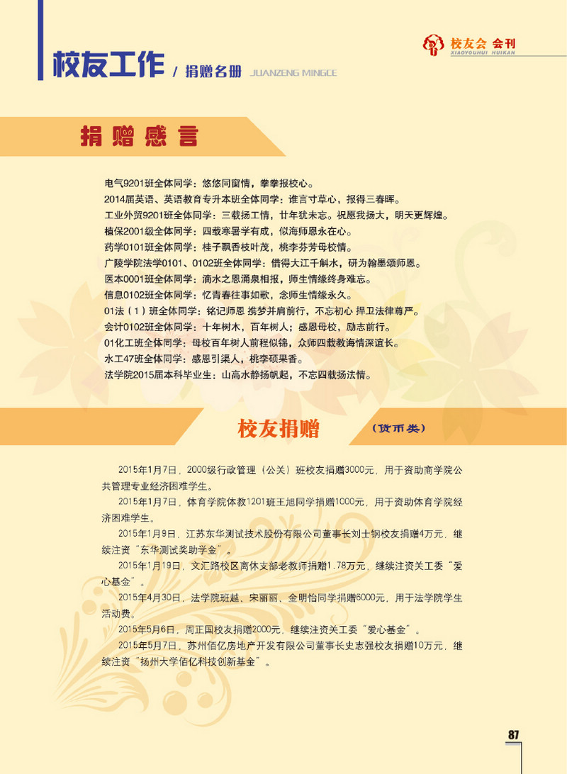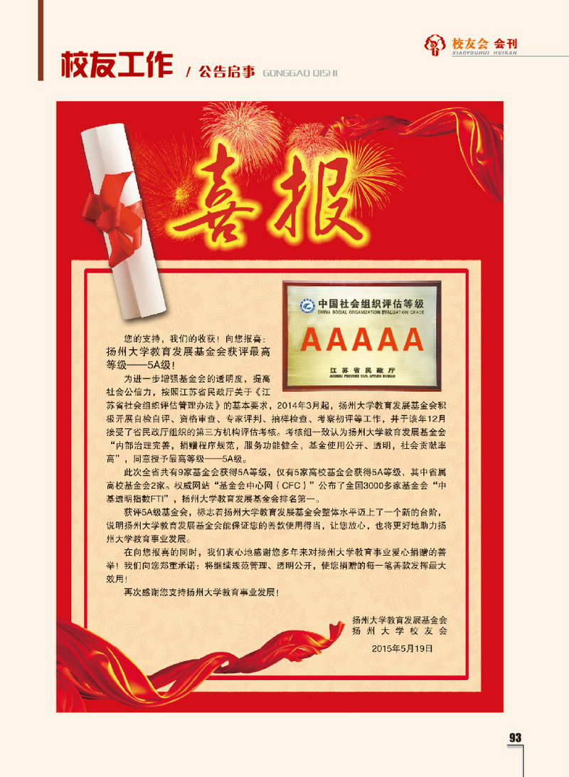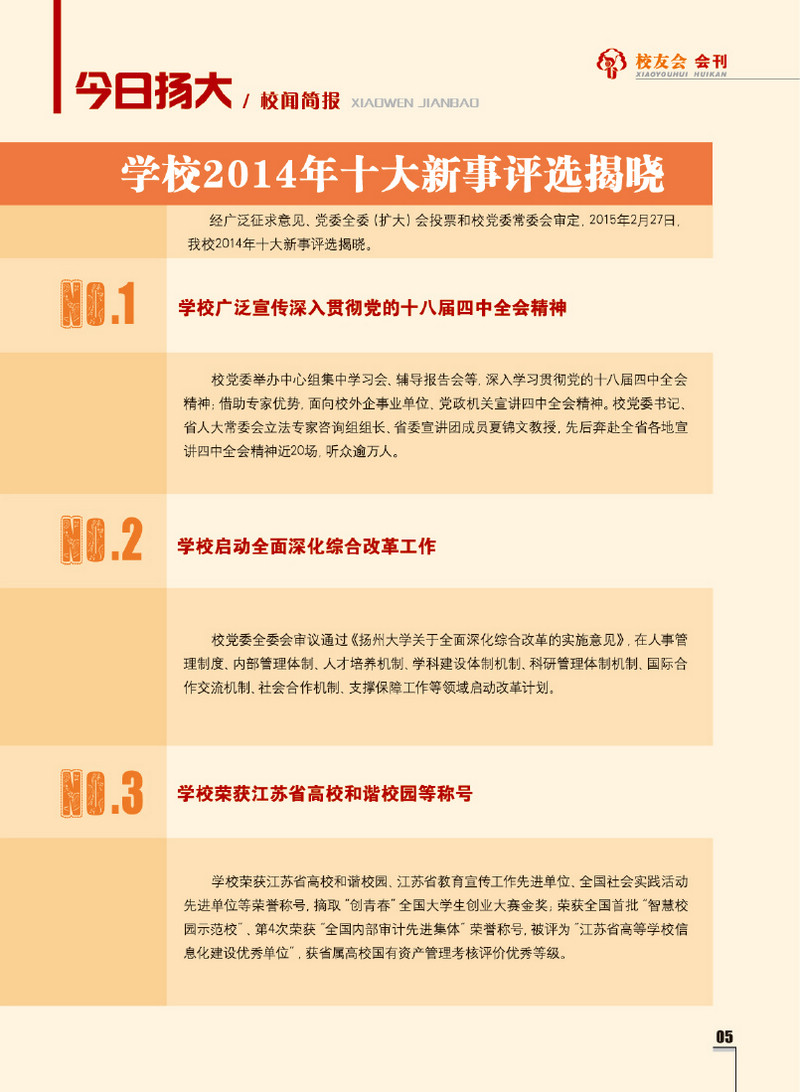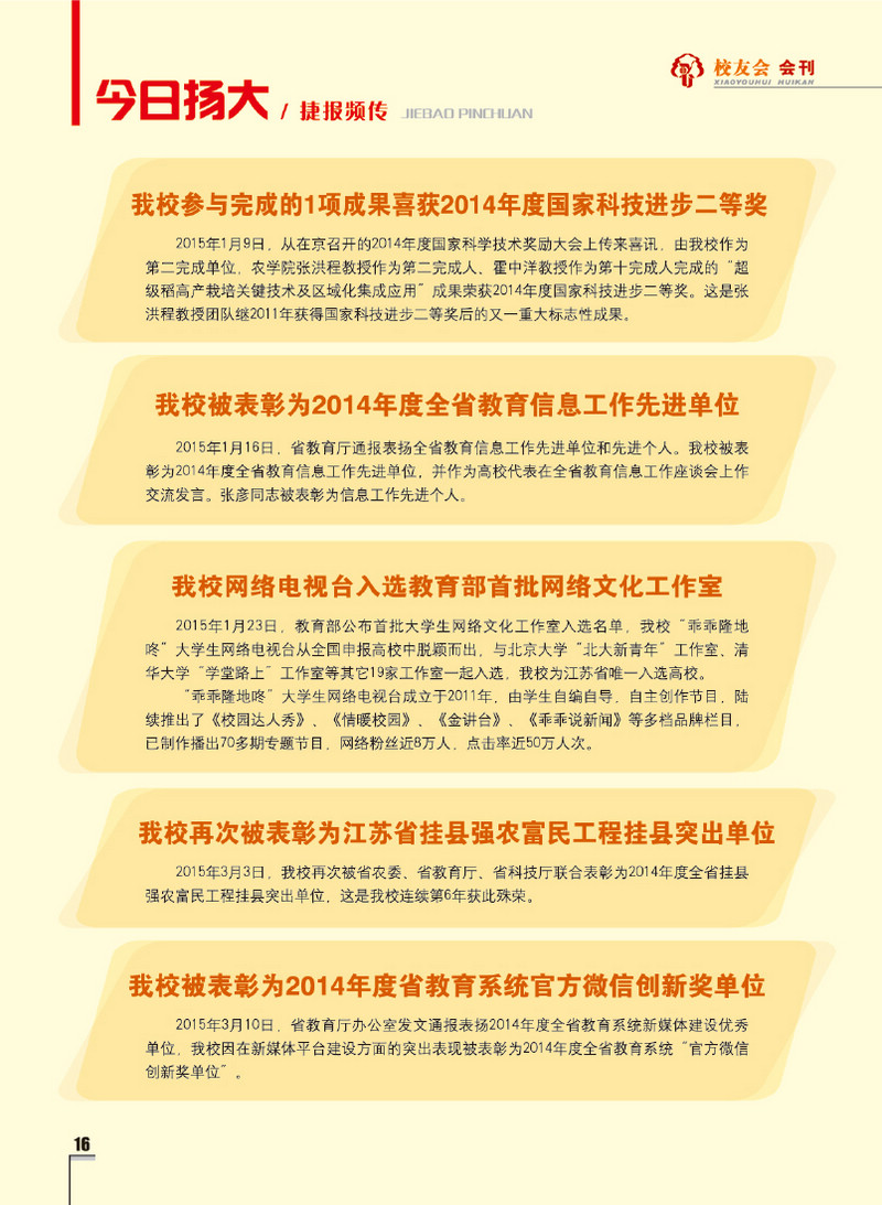 《扬州大学校友会会刊》2015年春华卷 总第18期