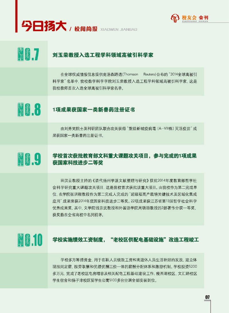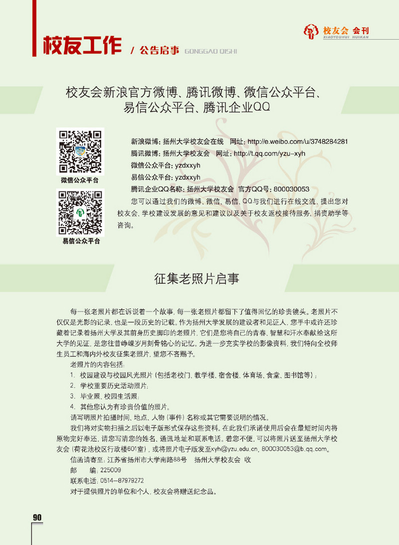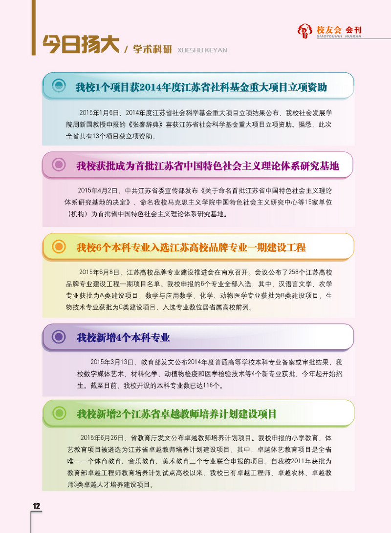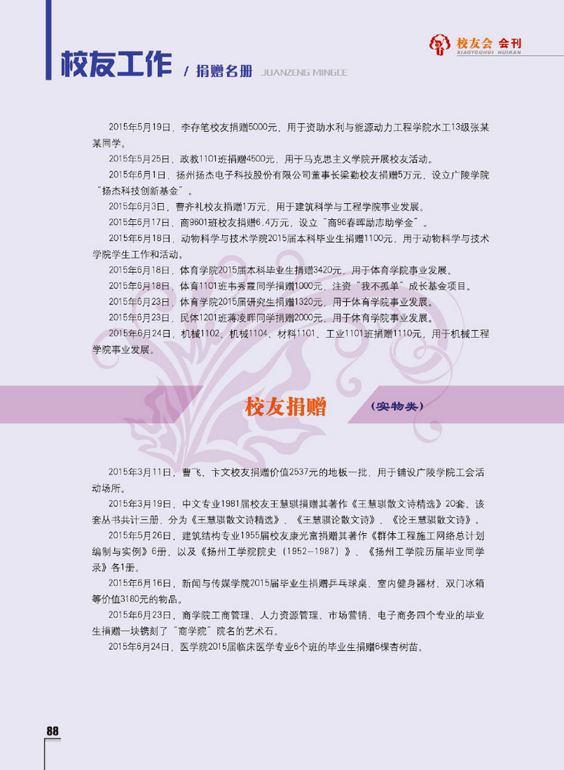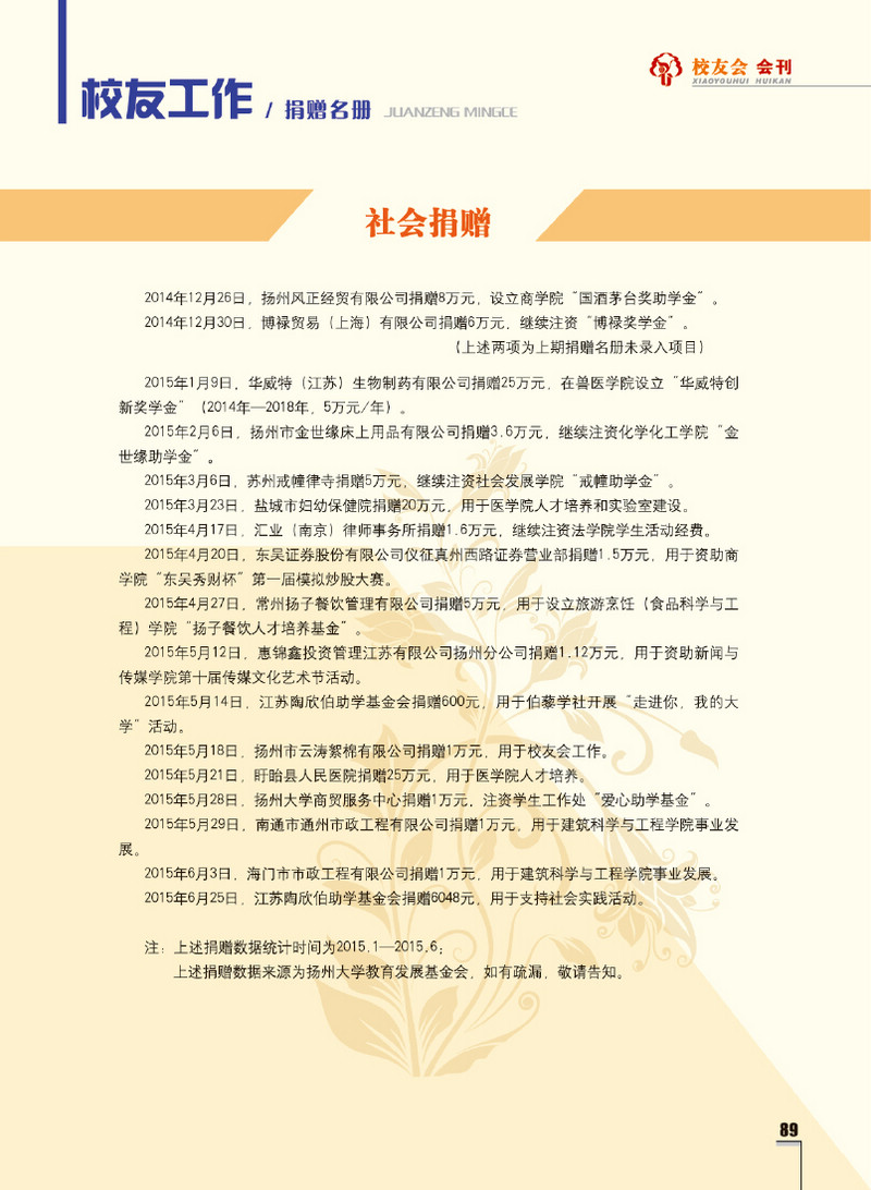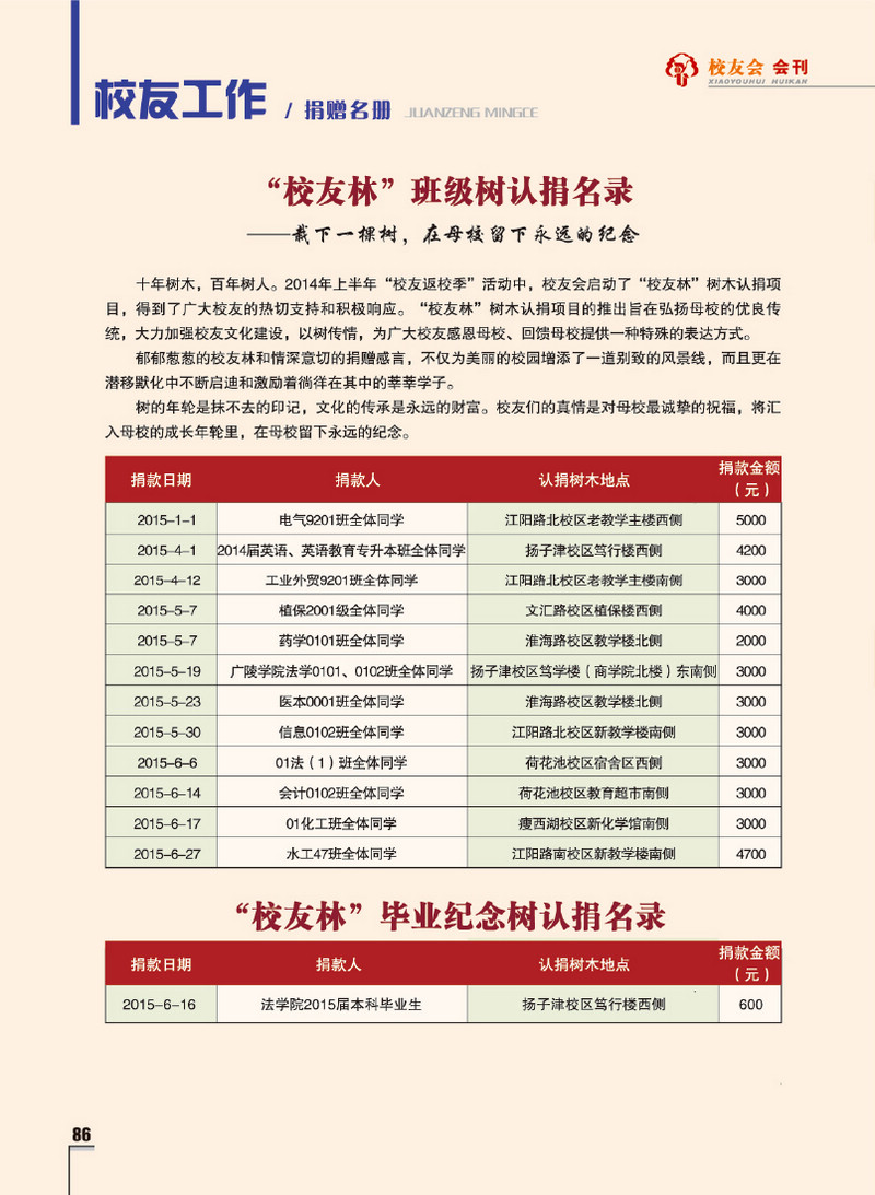 《扬州大学校友会会刊》2015年春华卷 总第18期