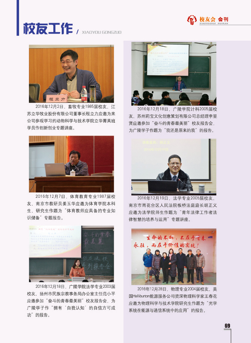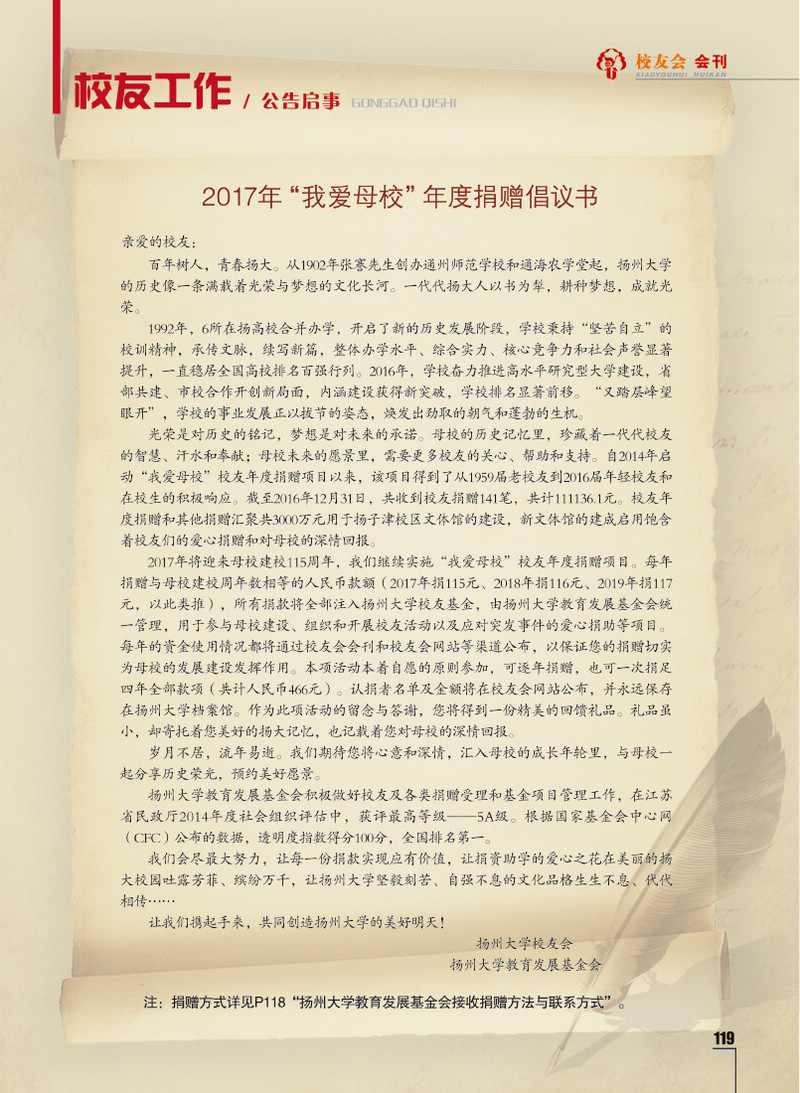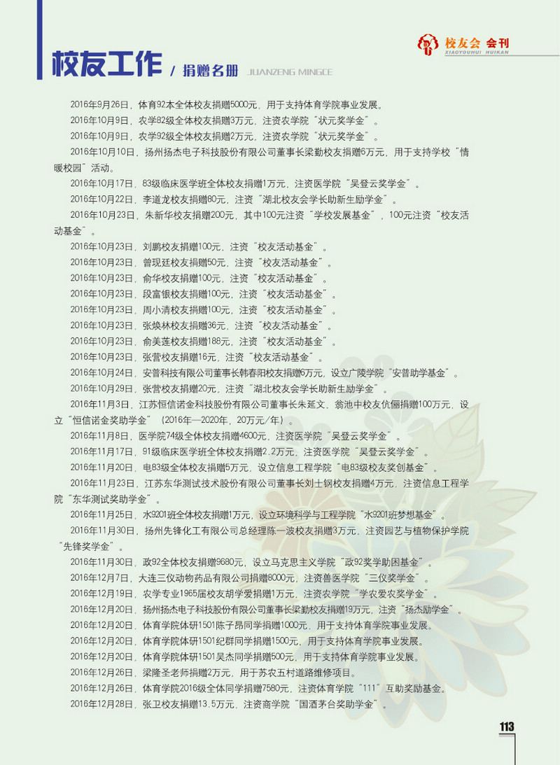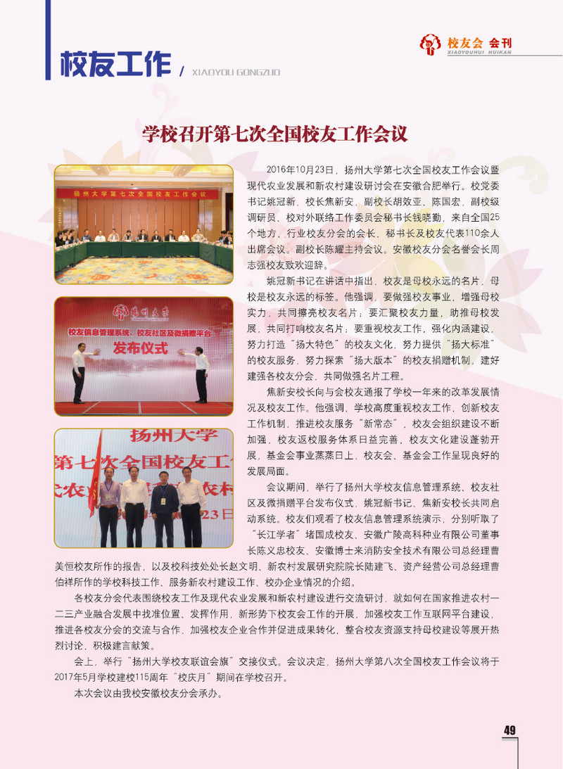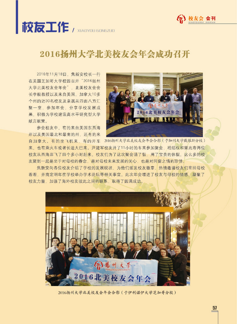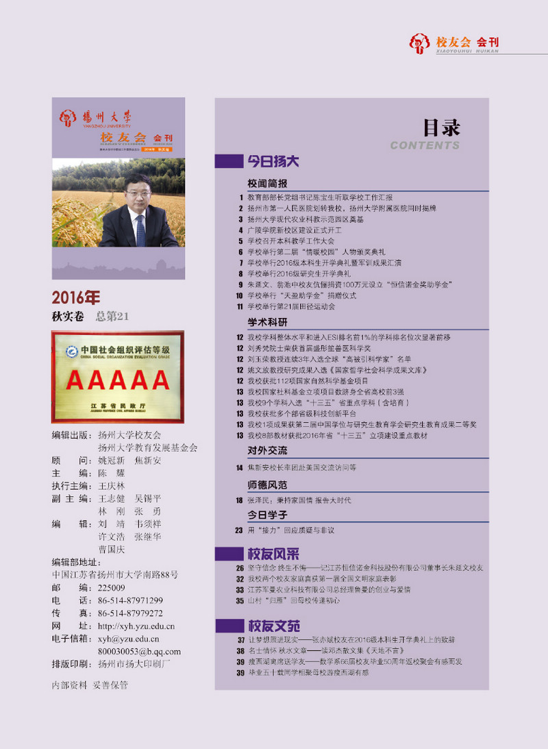 《扬州大学校友会会刊》2016年秋实卷 总第21期