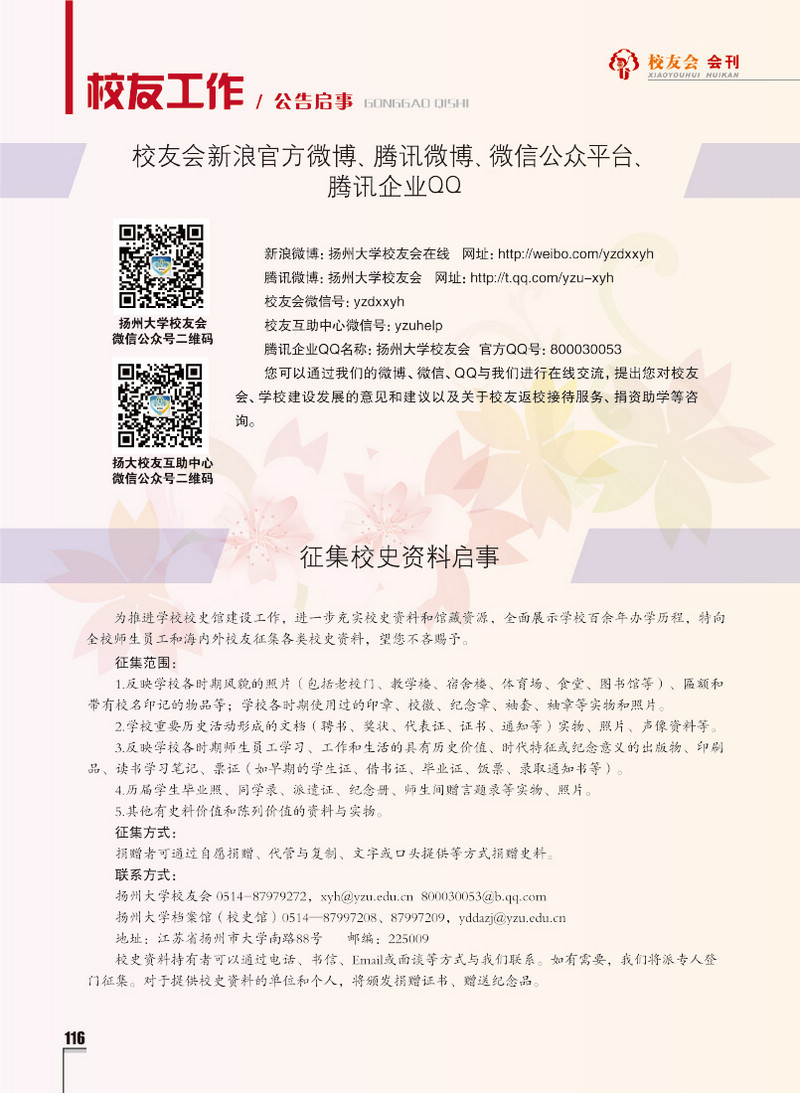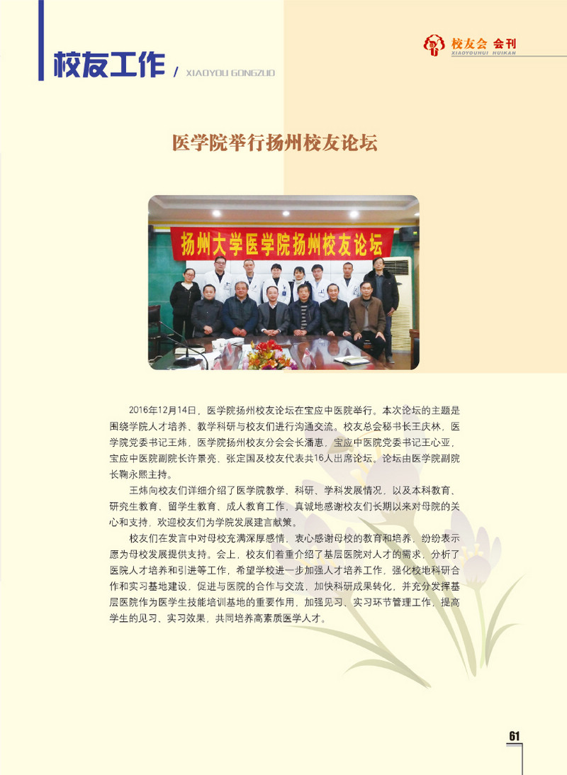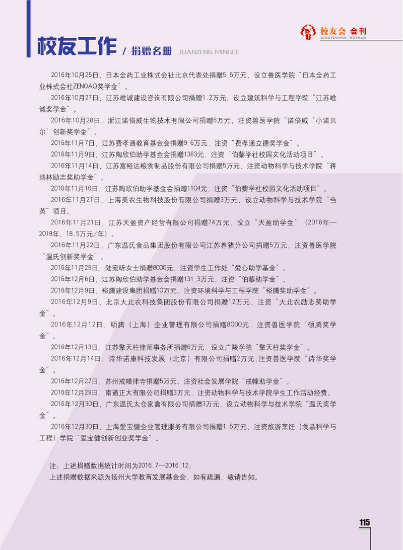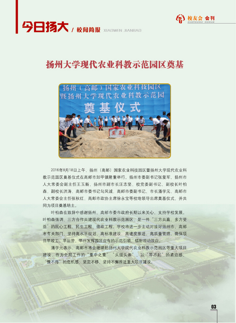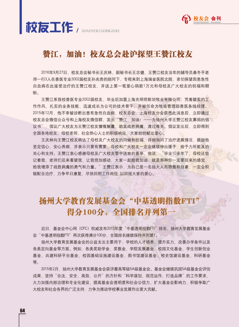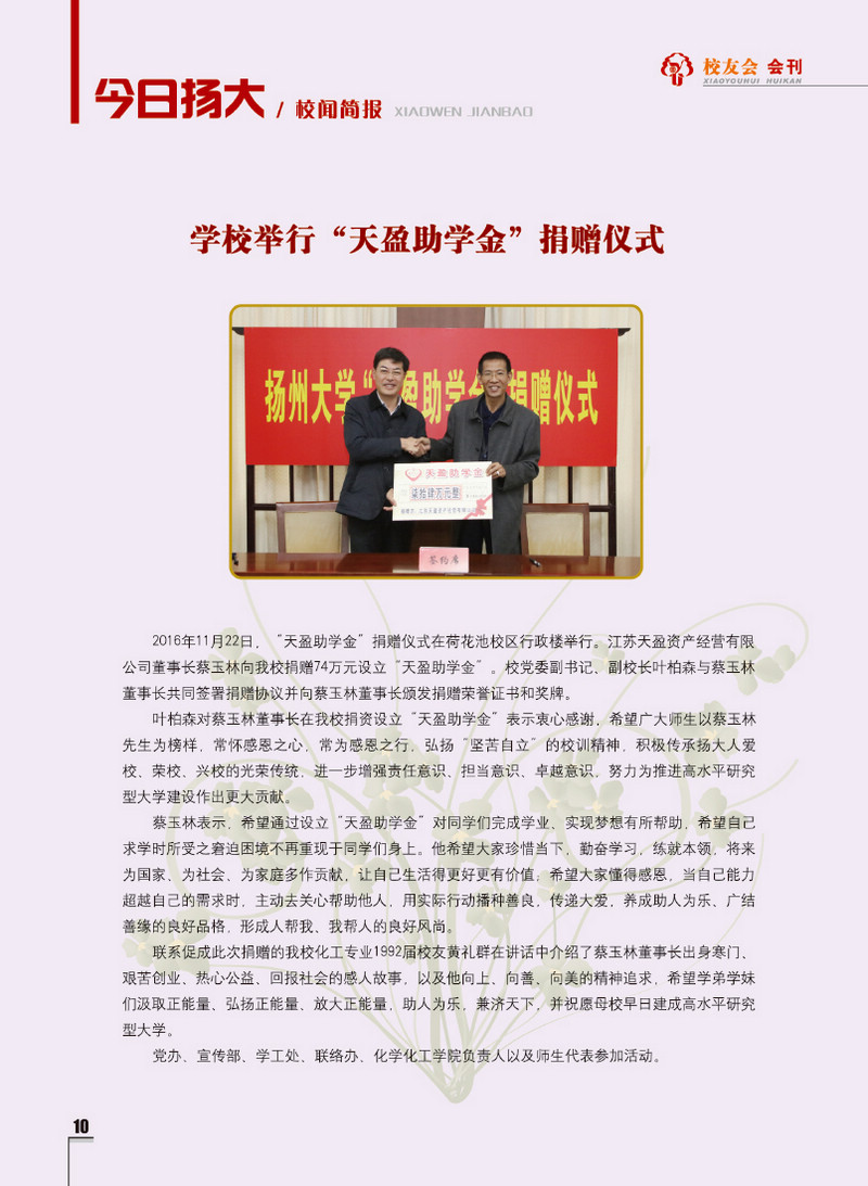 《扬州大学校友会会刊》2016年秋实卷 总第21期