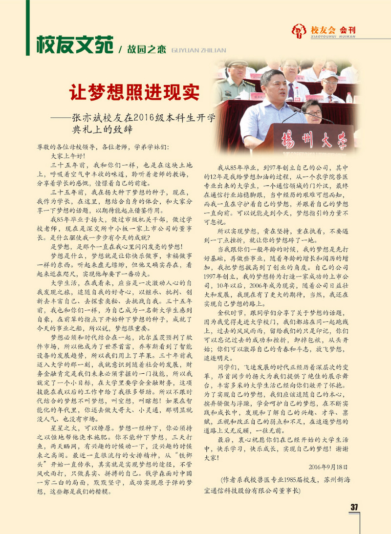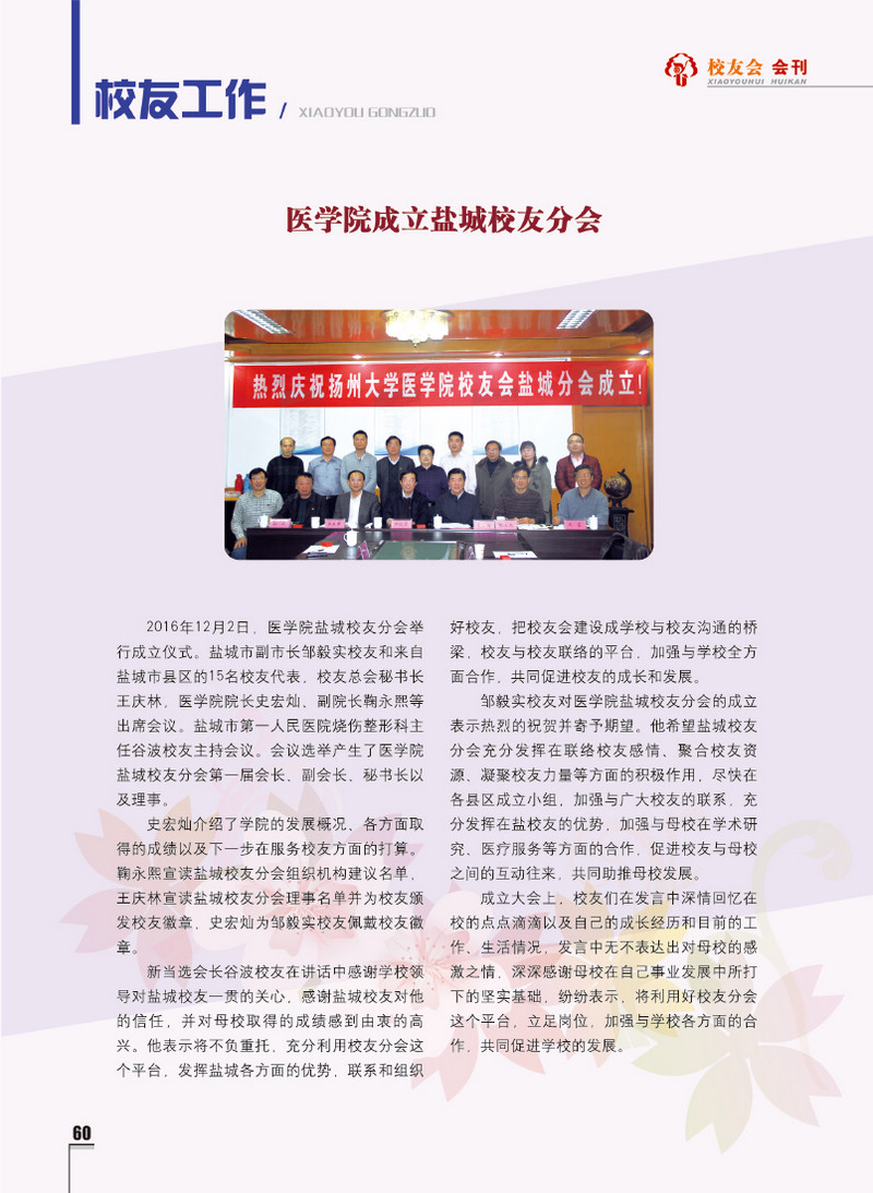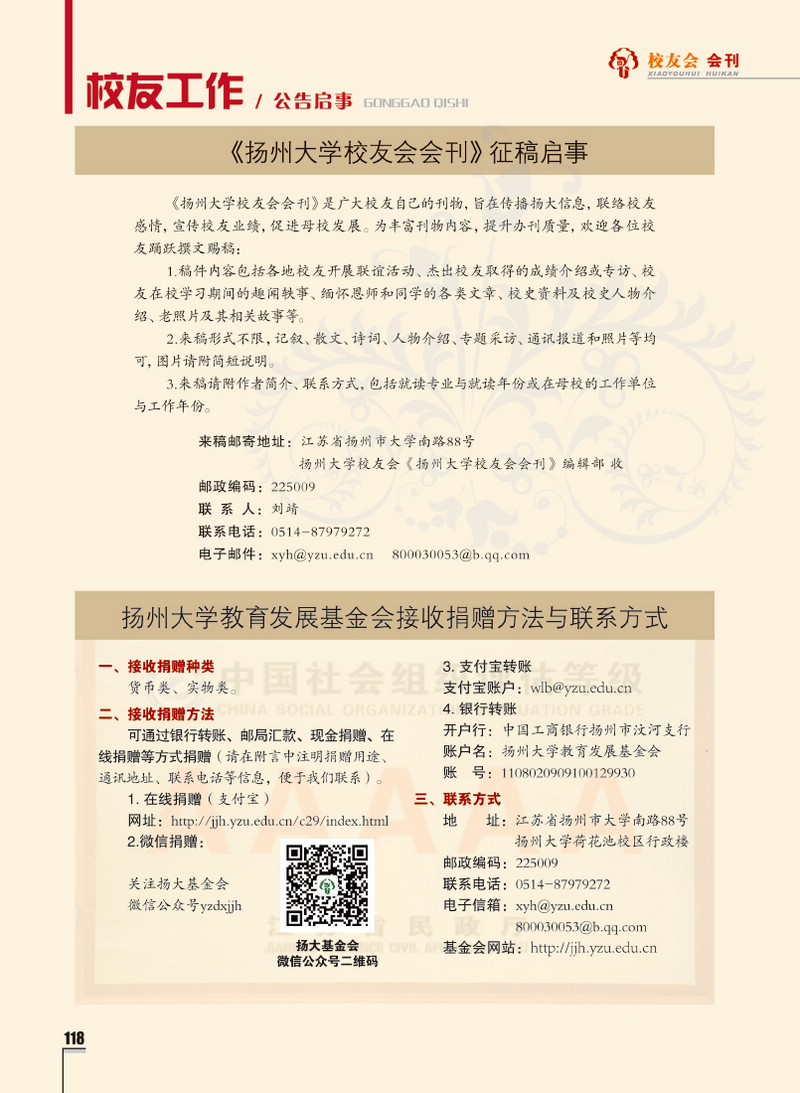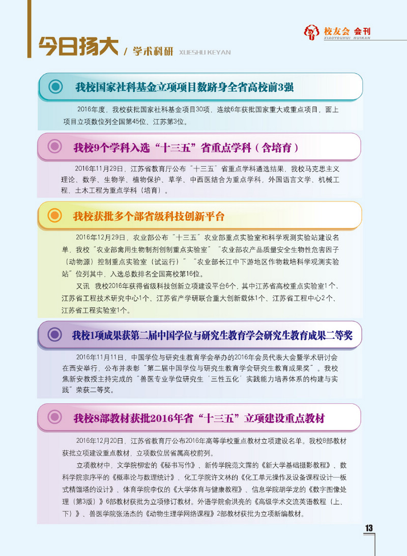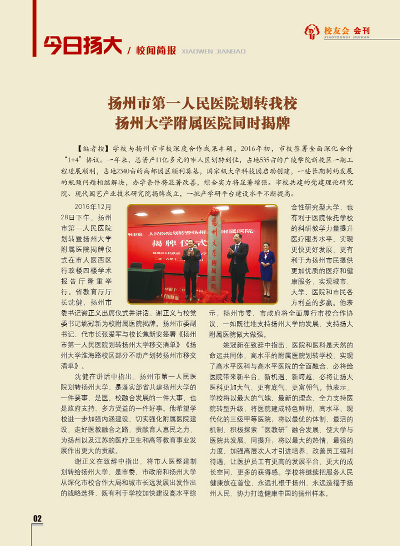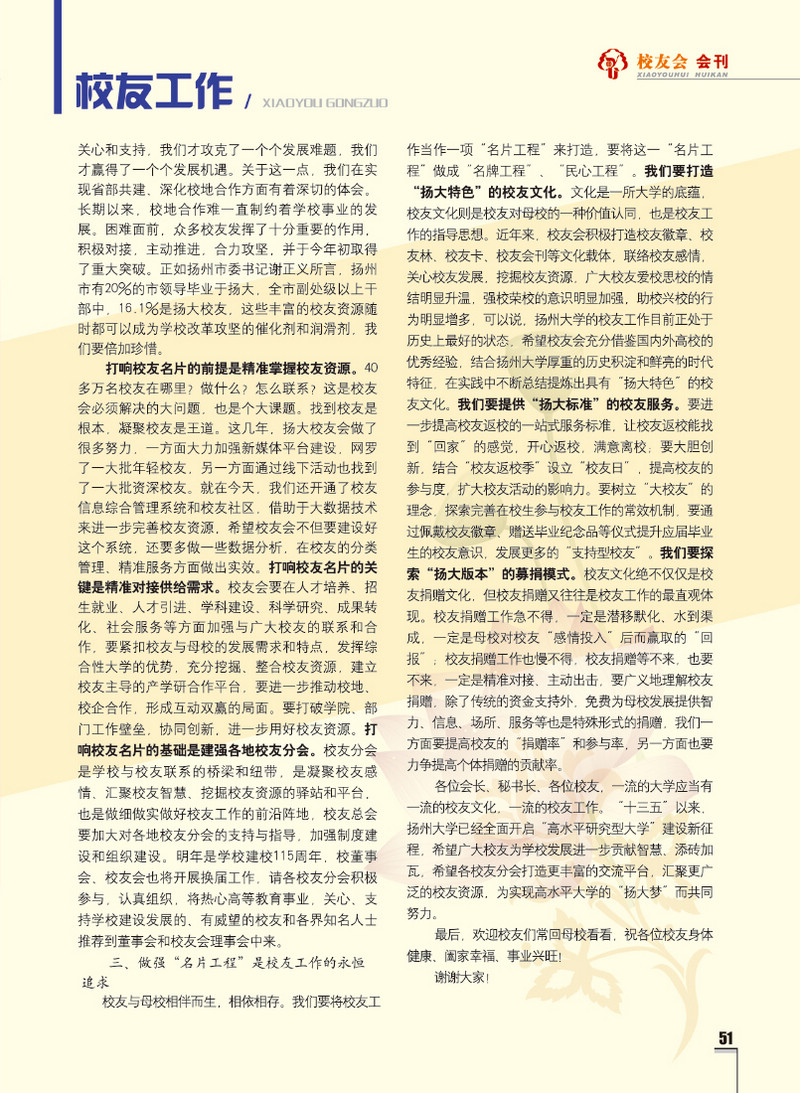 《扬州大学校友会会刊》2016年秋实卷 总第21期