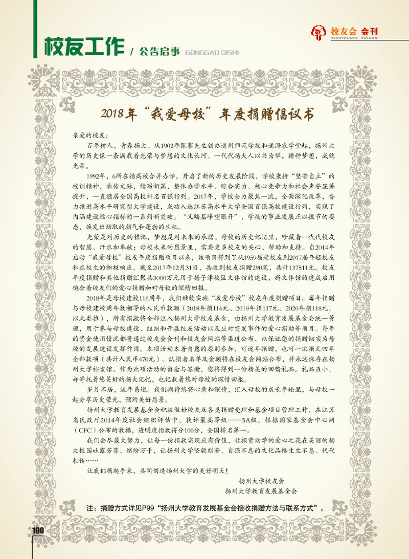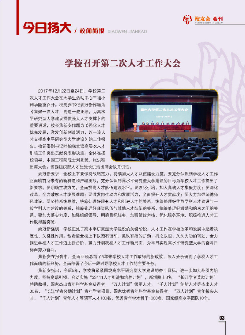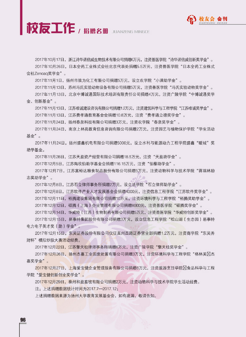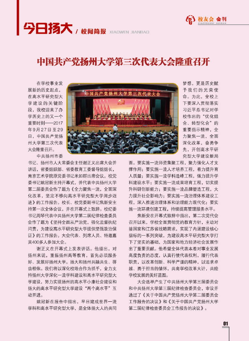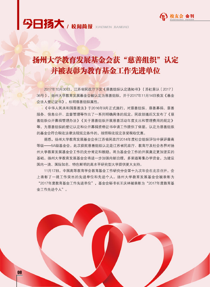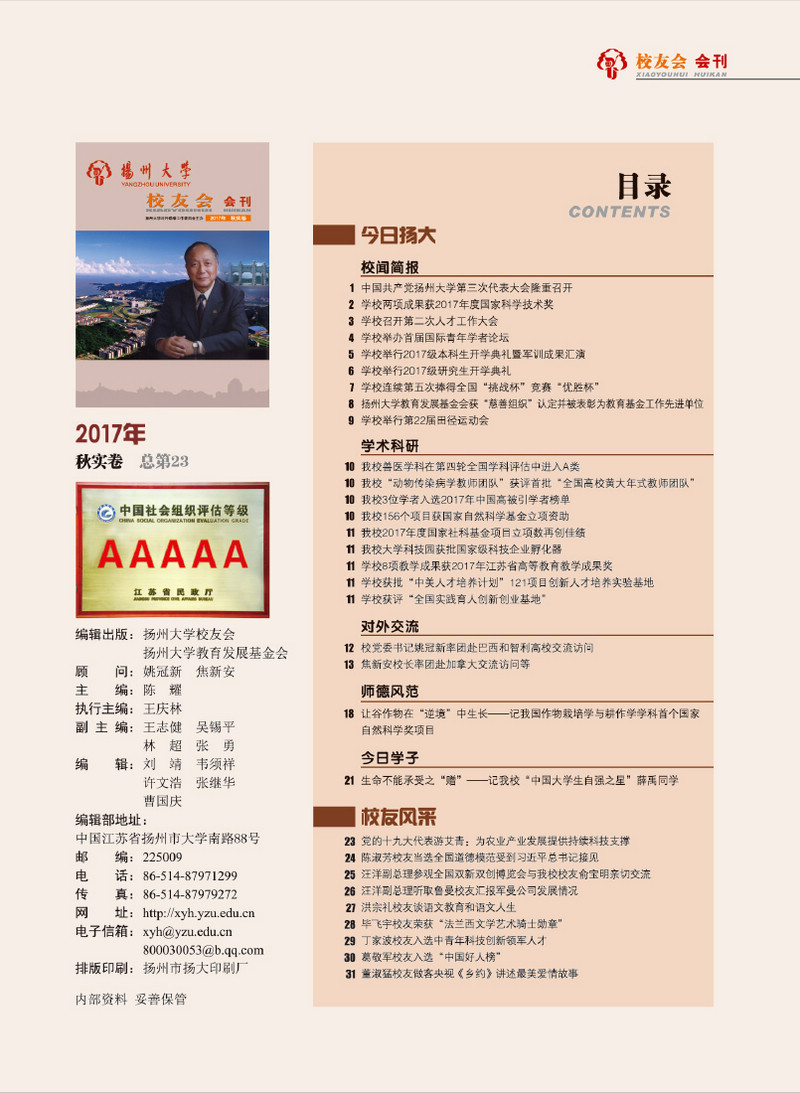 《扬州大学校友会会刊》2017年秋实卷 总第23期
