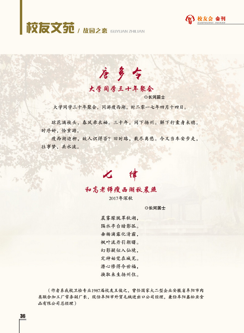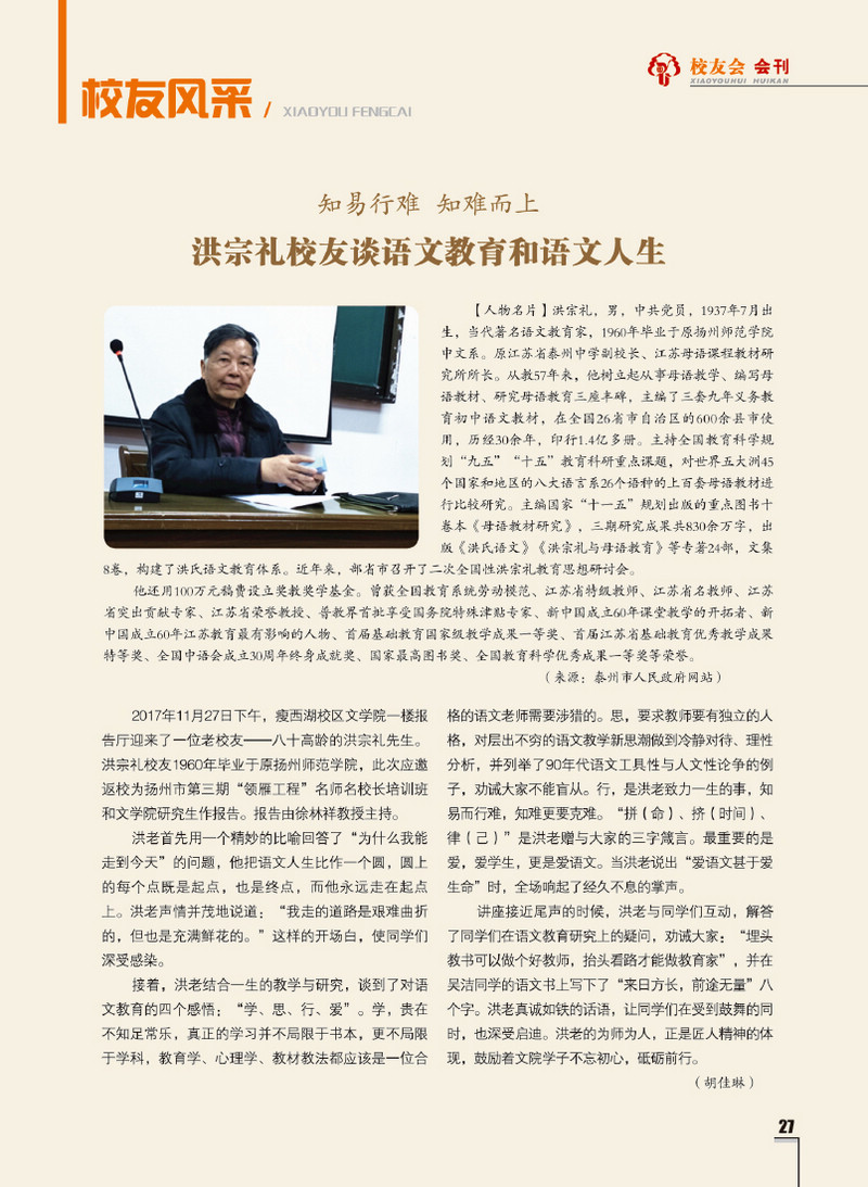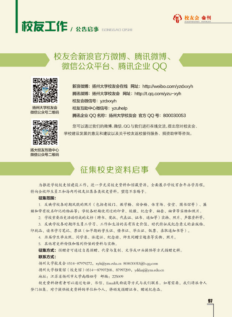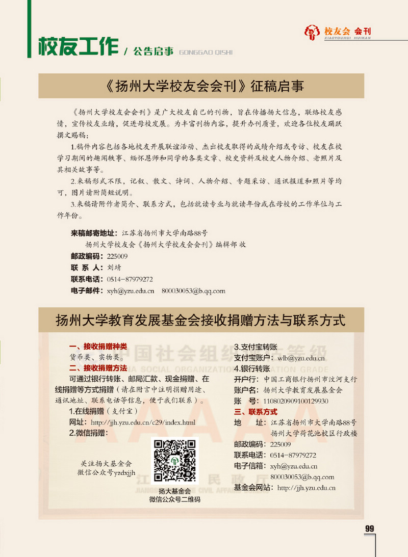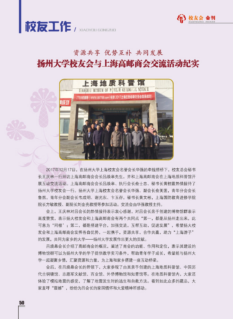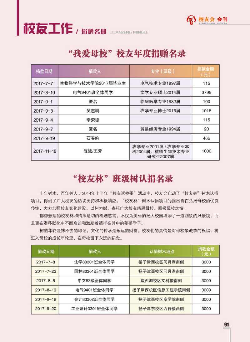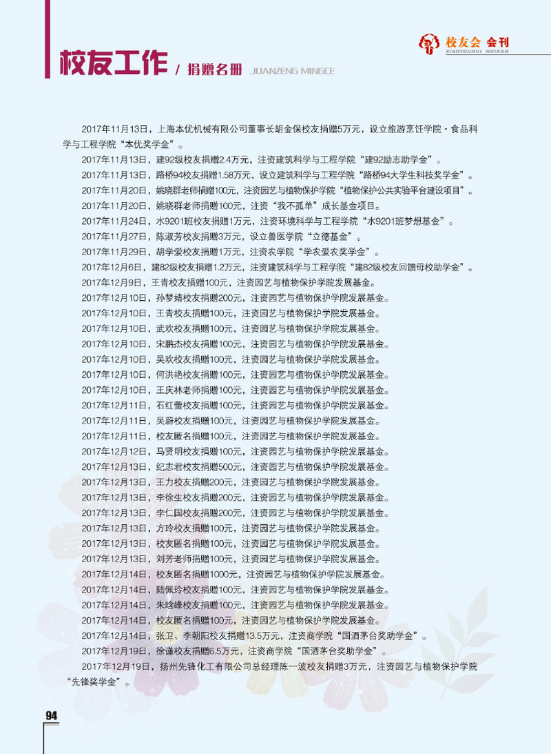 《扬州大学校友会会刊》2017年秋实卷 总第23期