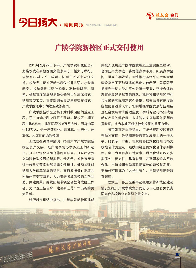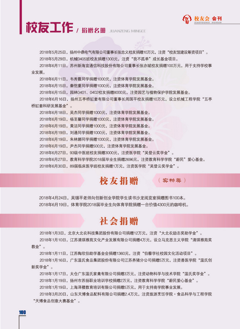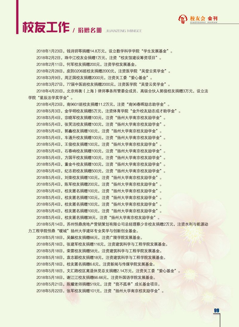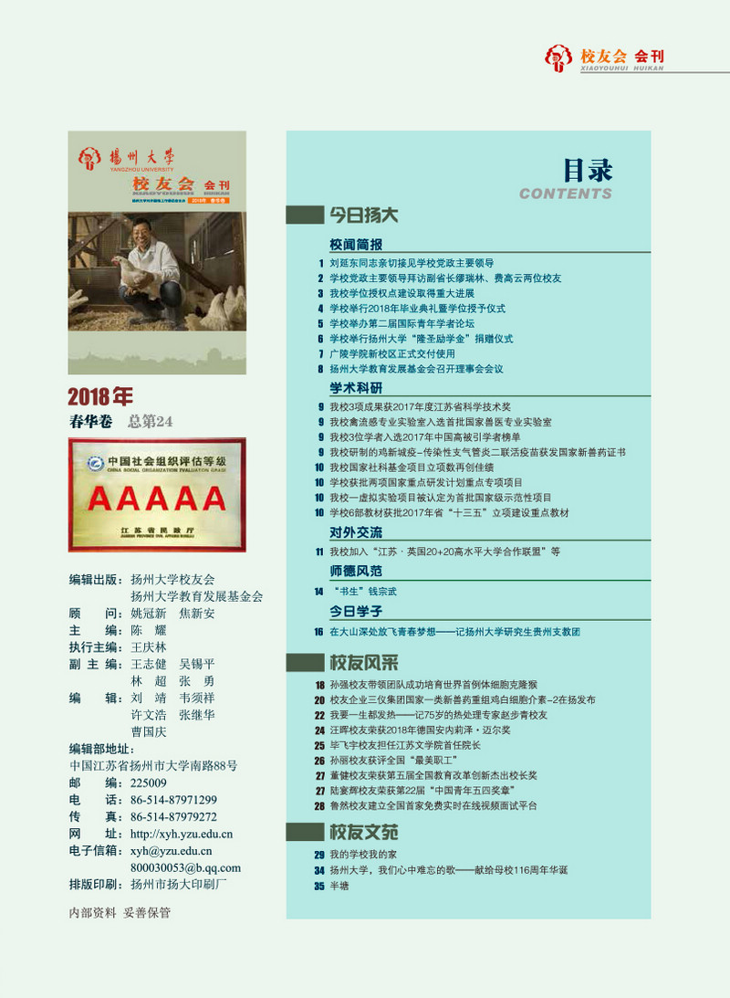 《扬州大学校友会会刊》2018年春华卷 总第24期