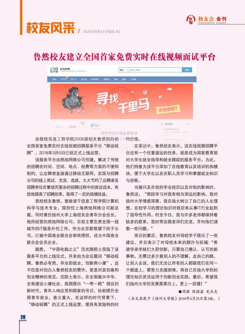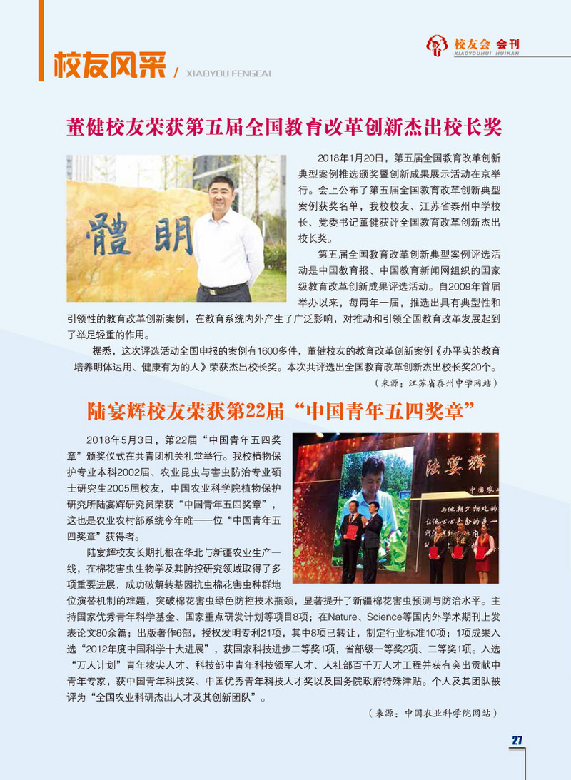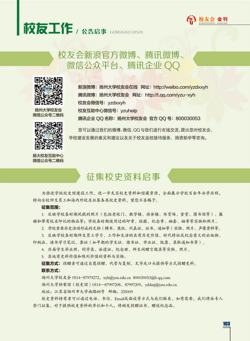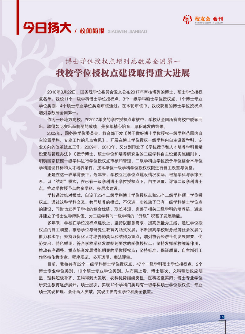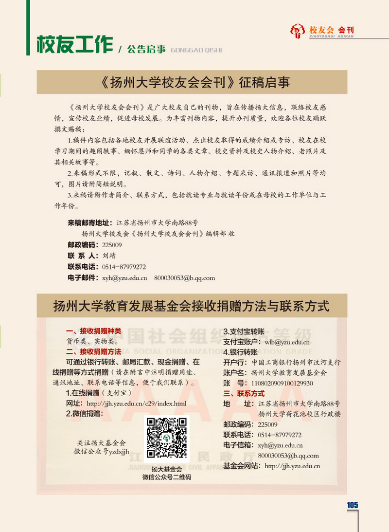 《扬州大学校友会会刊》2018年春华卷 总第24期