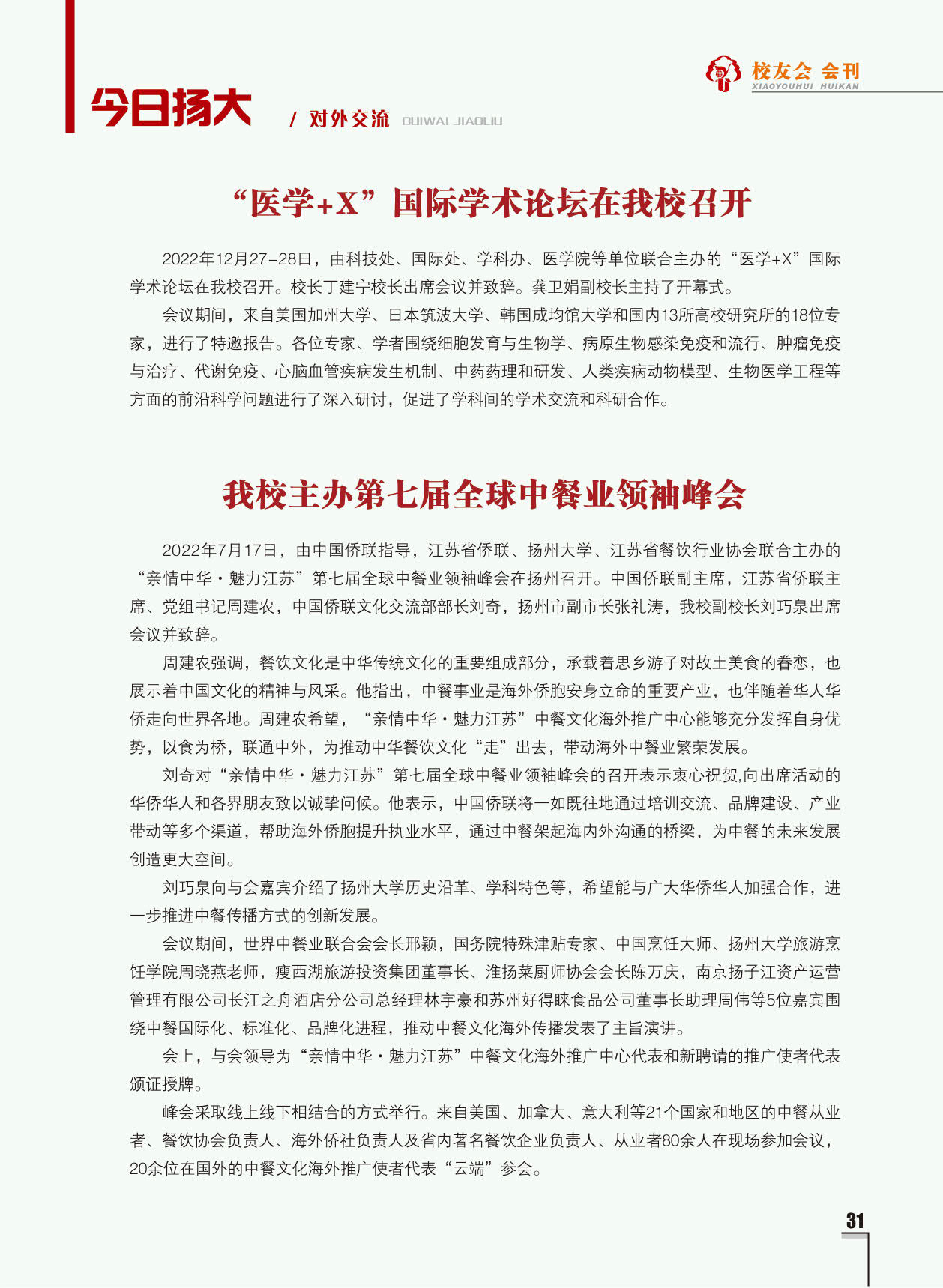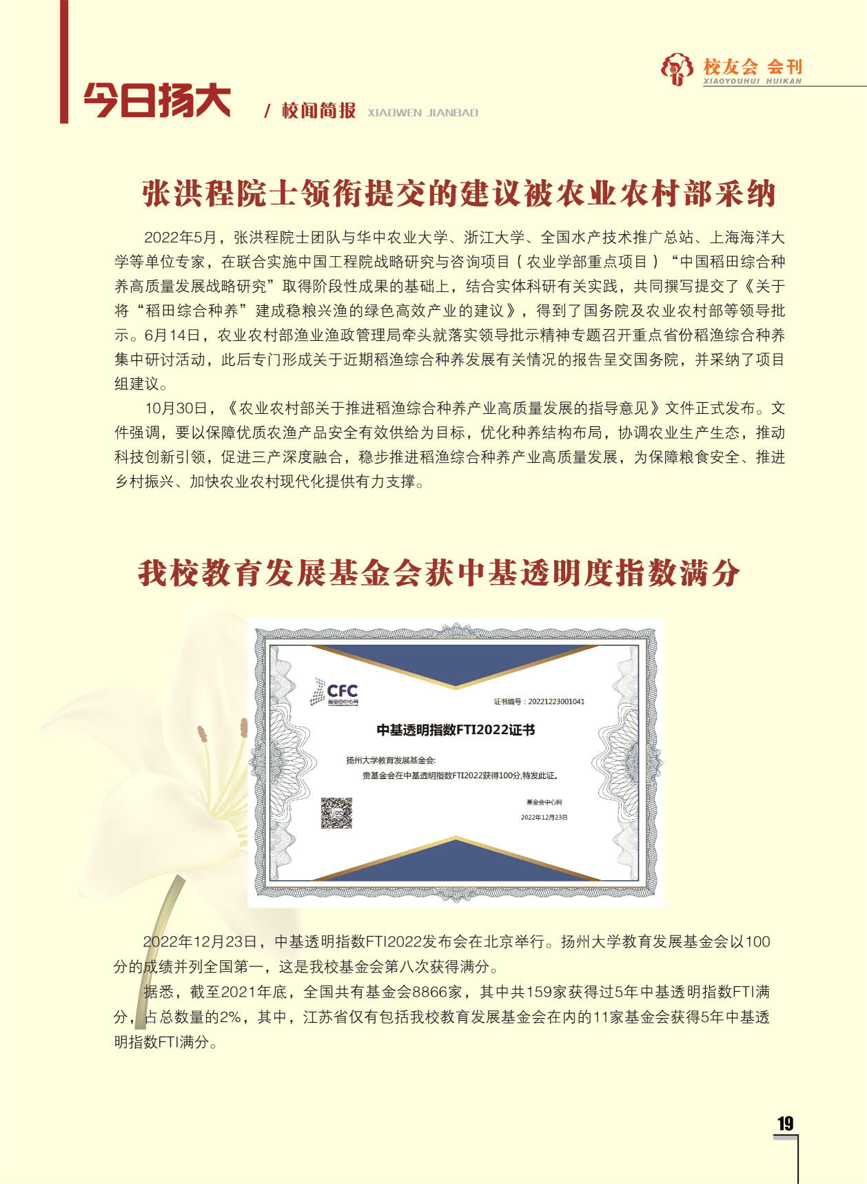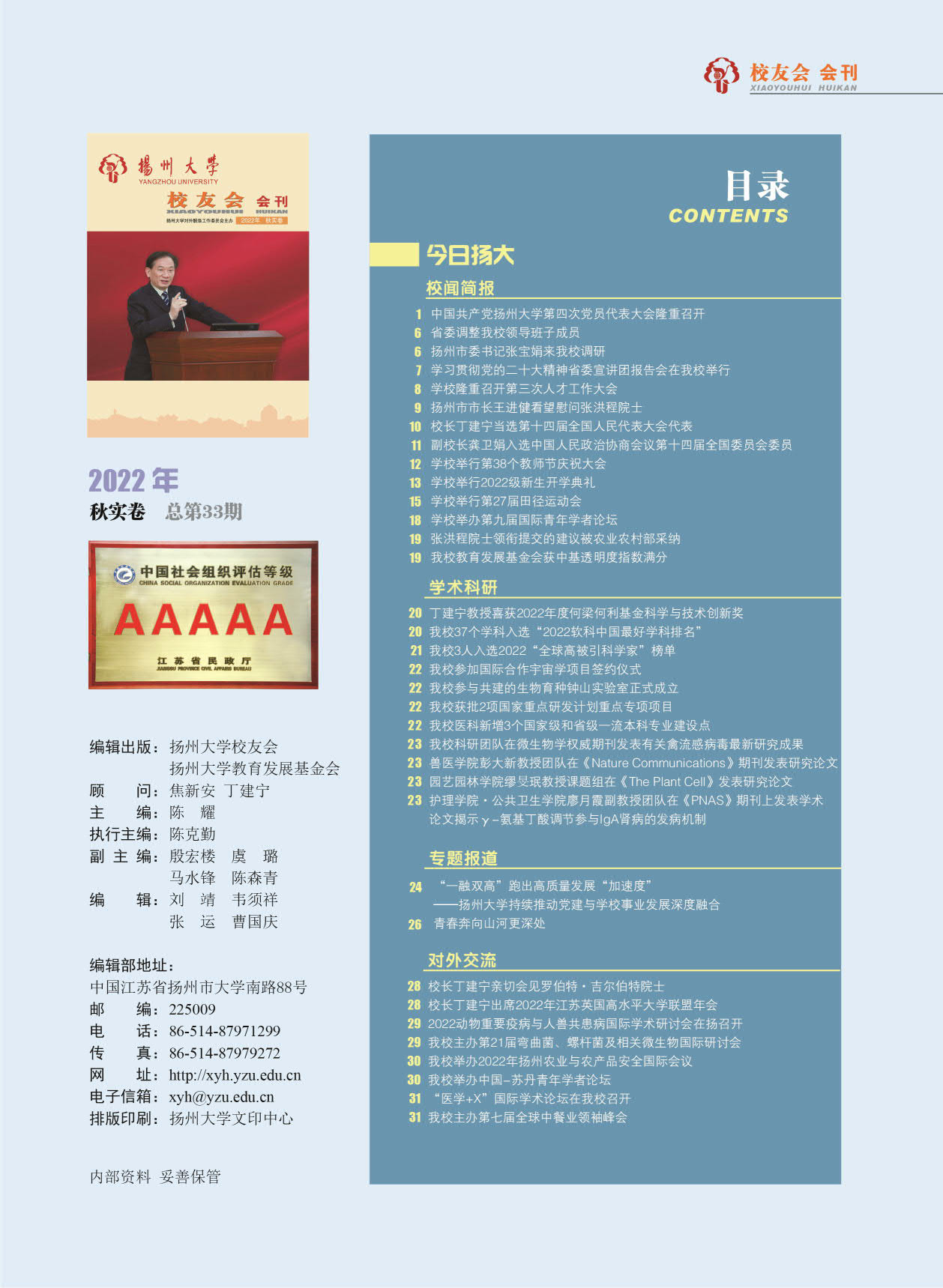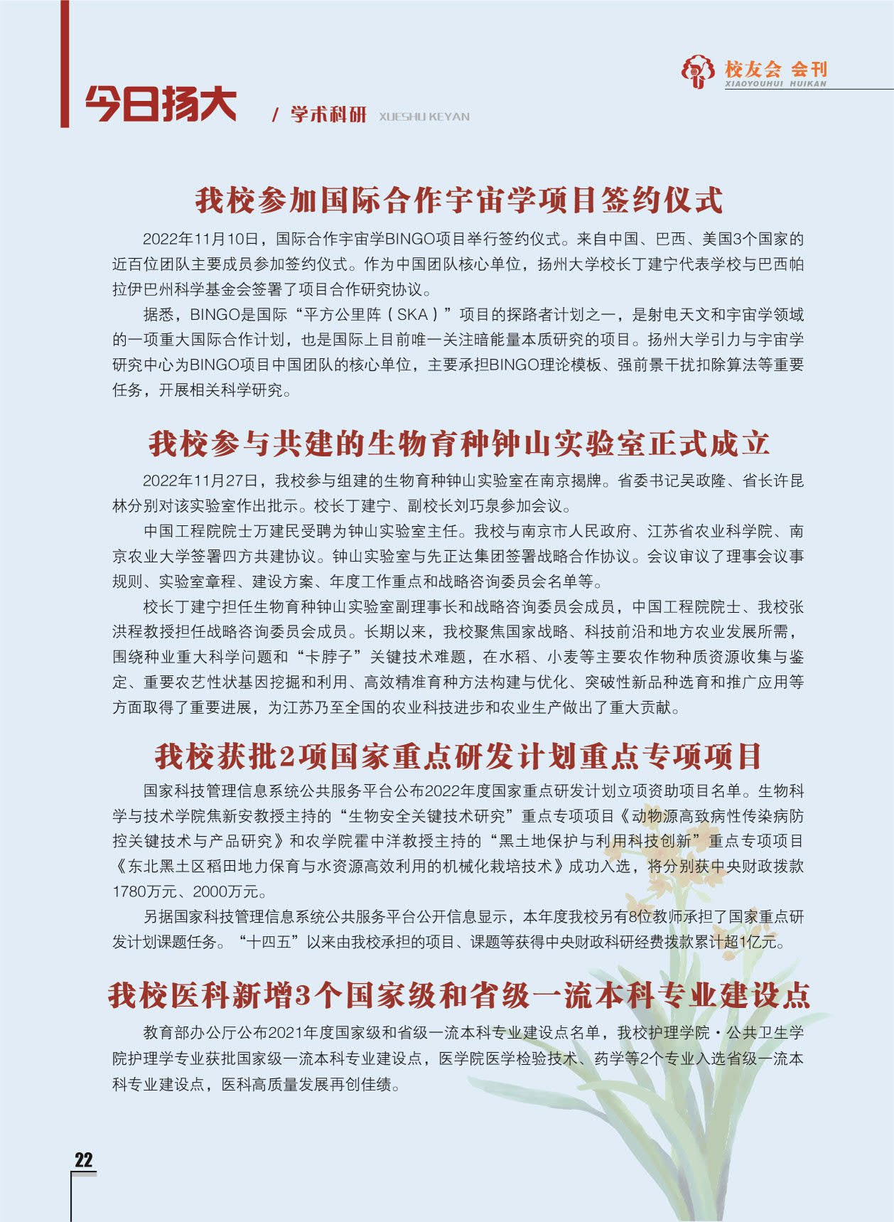 《扬州大学校友会会刊》2022年秋实卷 总第33期