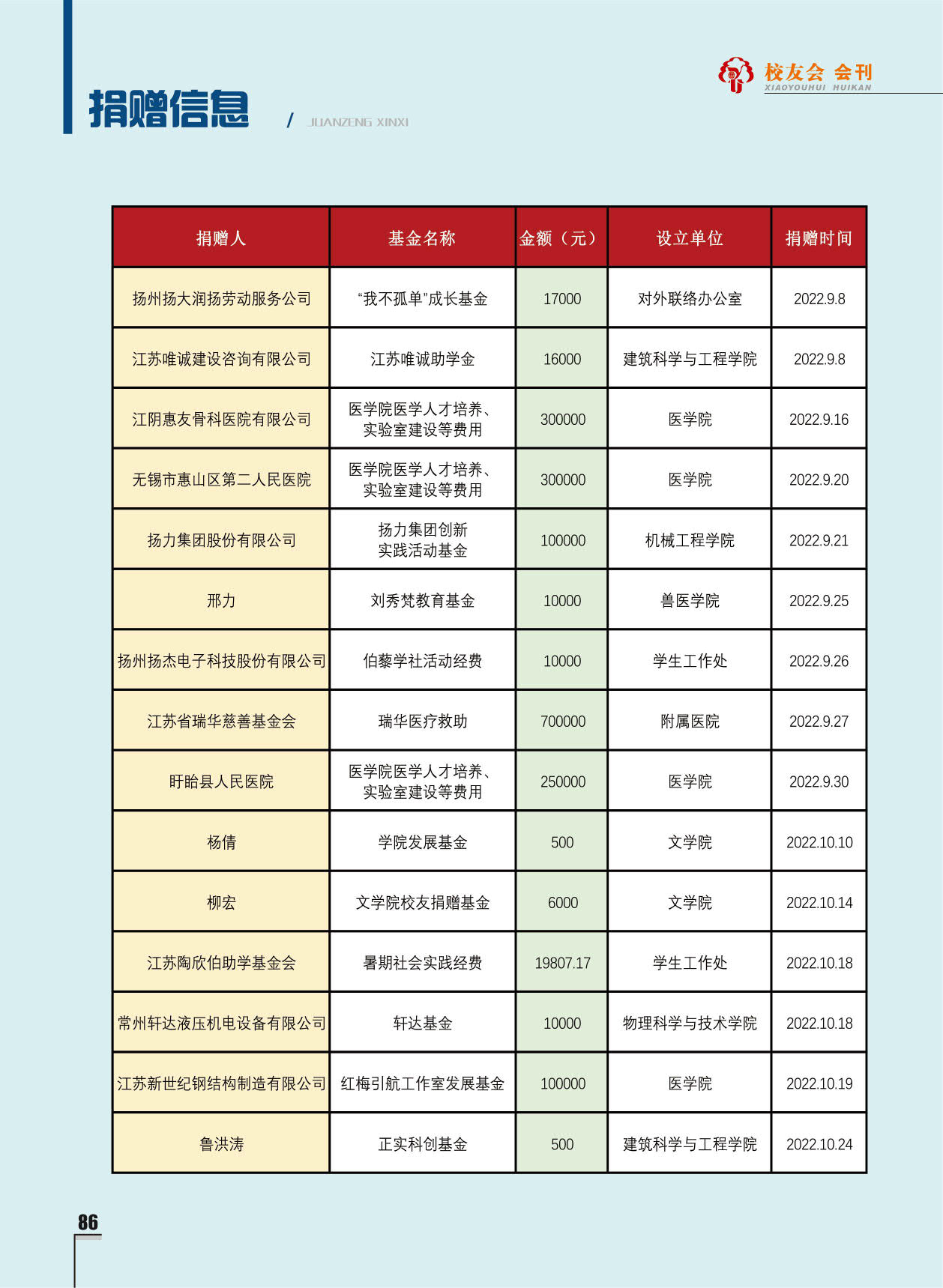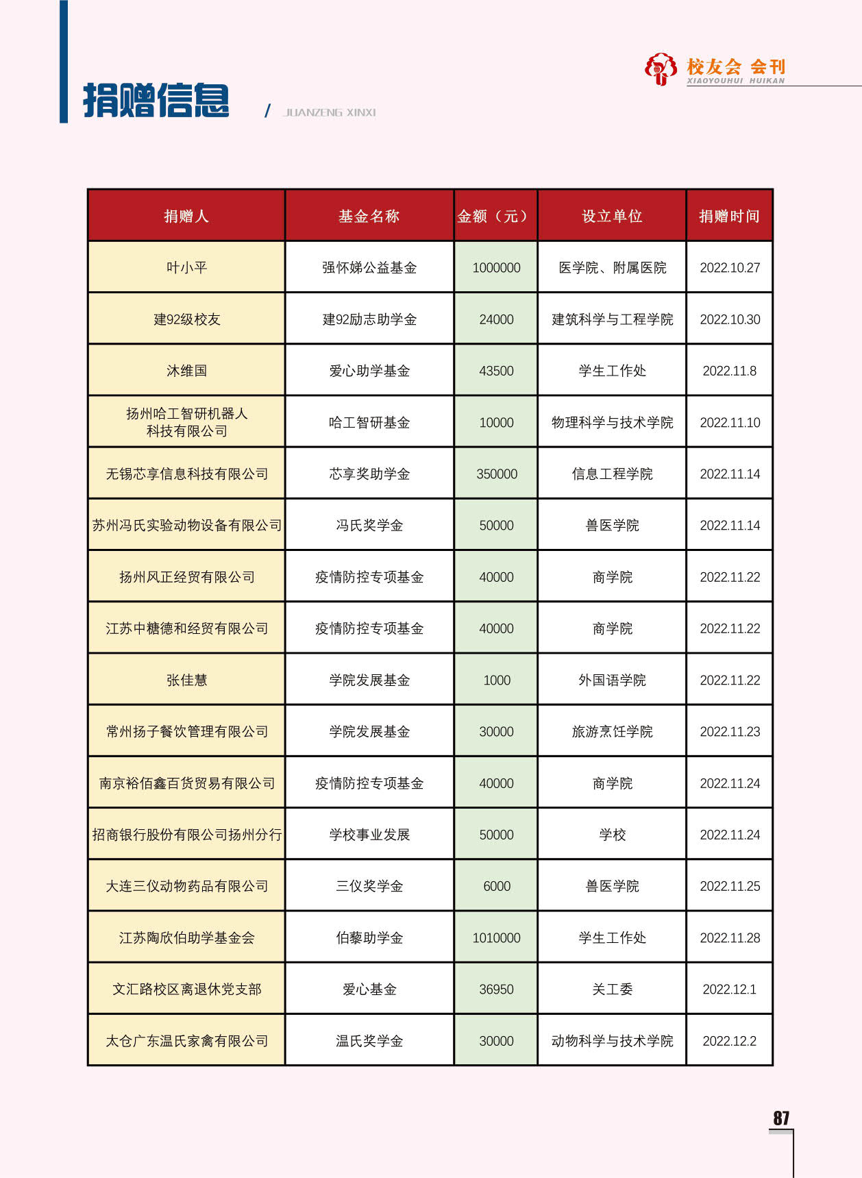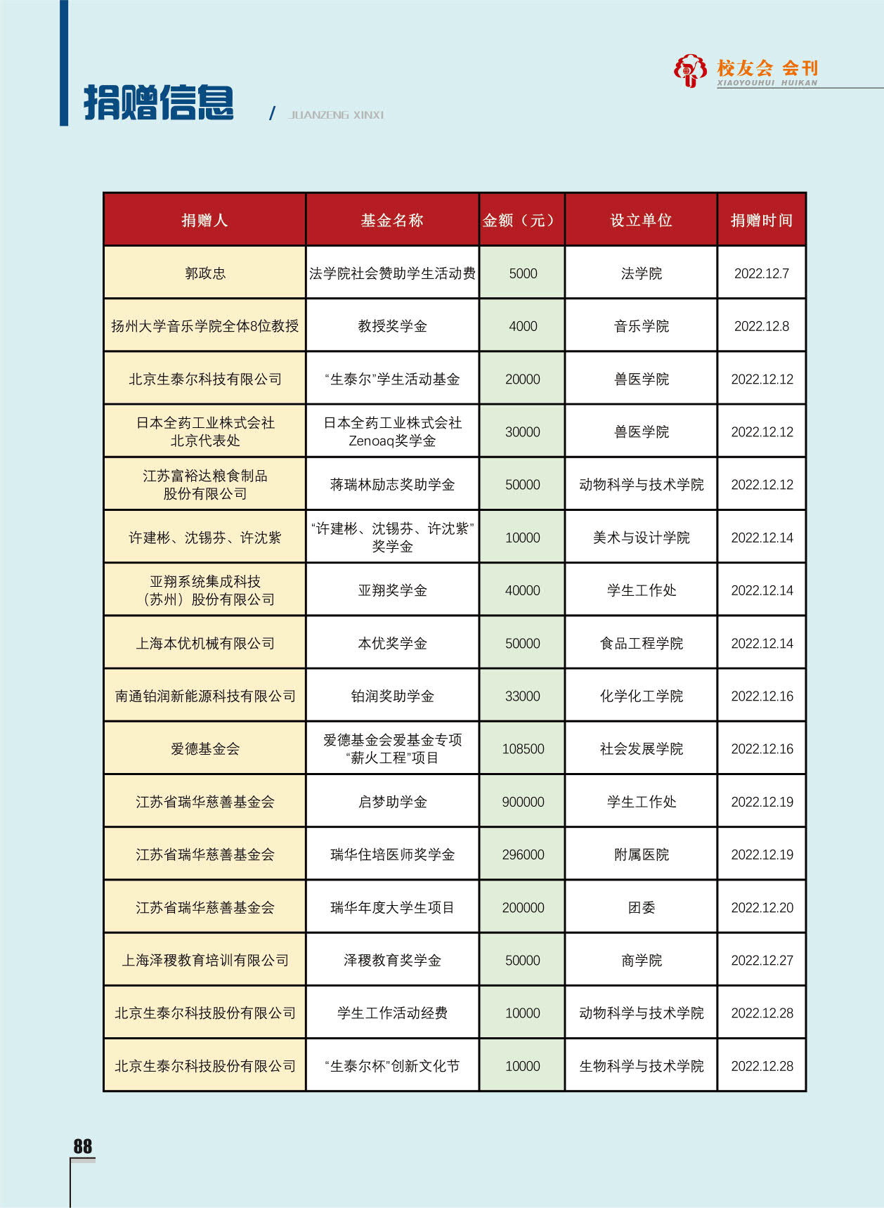 《扬州大学校友会会刊》2022年秋实卷 总第33期