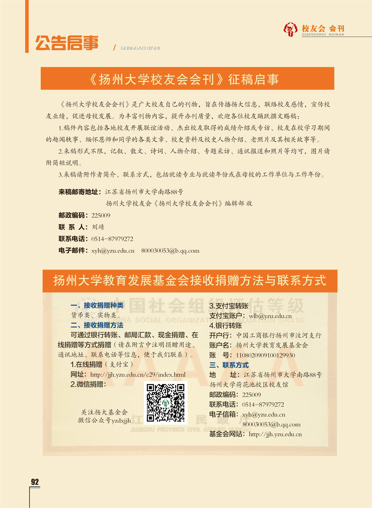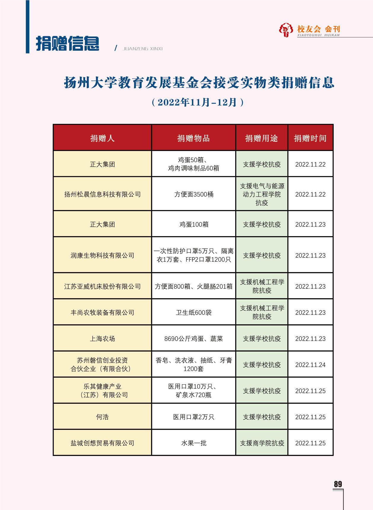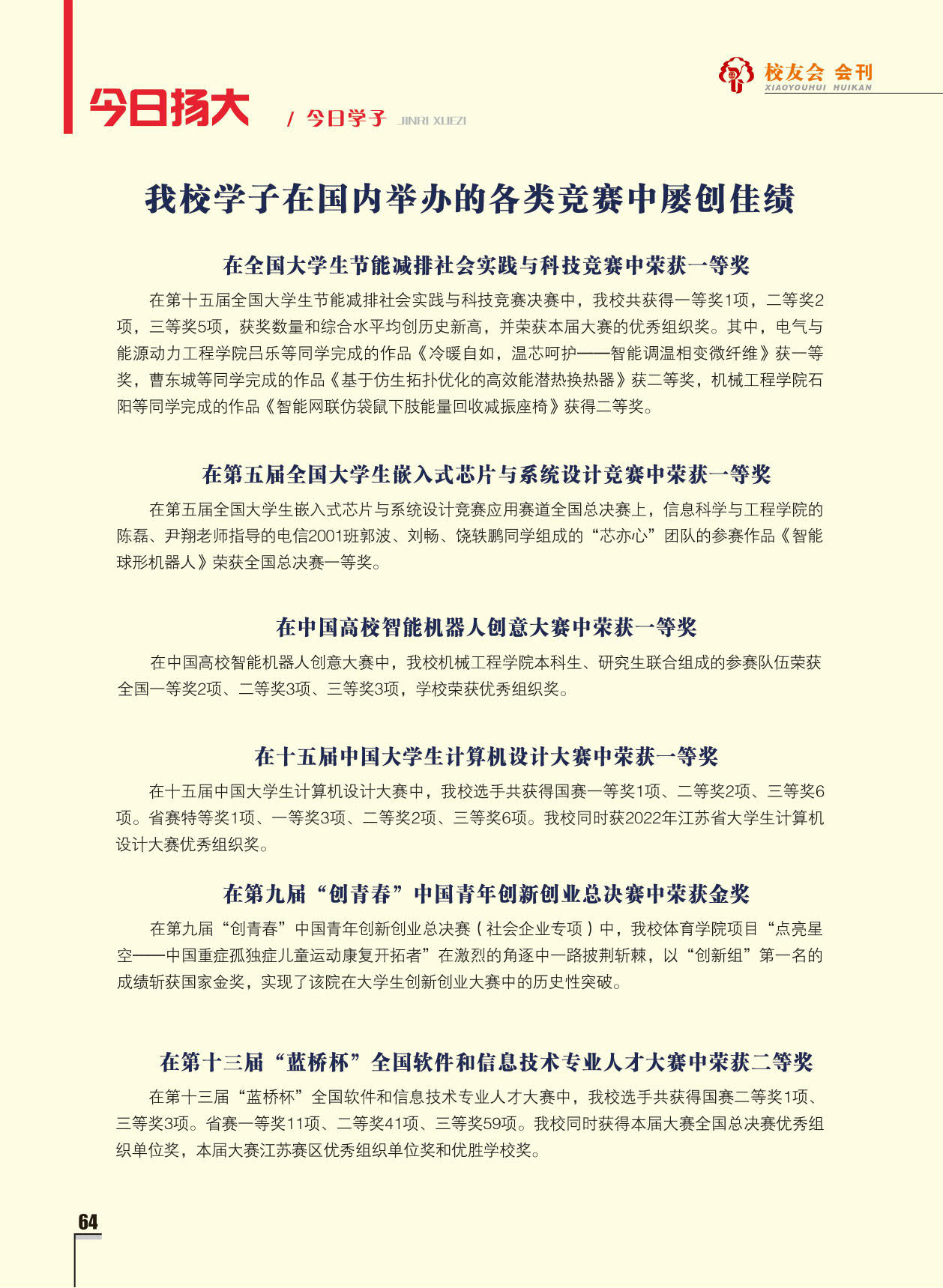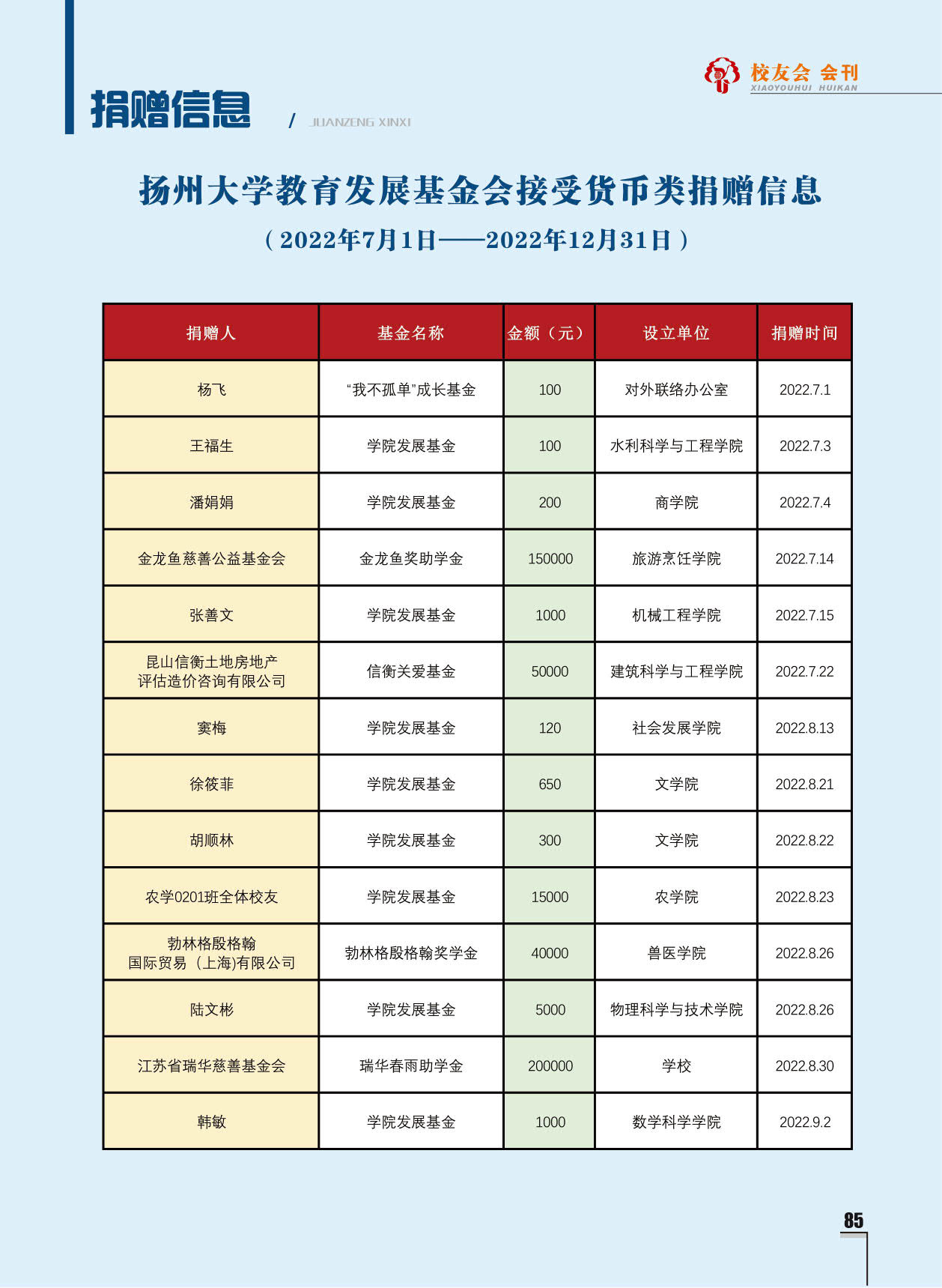 《扬州大学校友会会刊》2022年秋实卷 总第33期